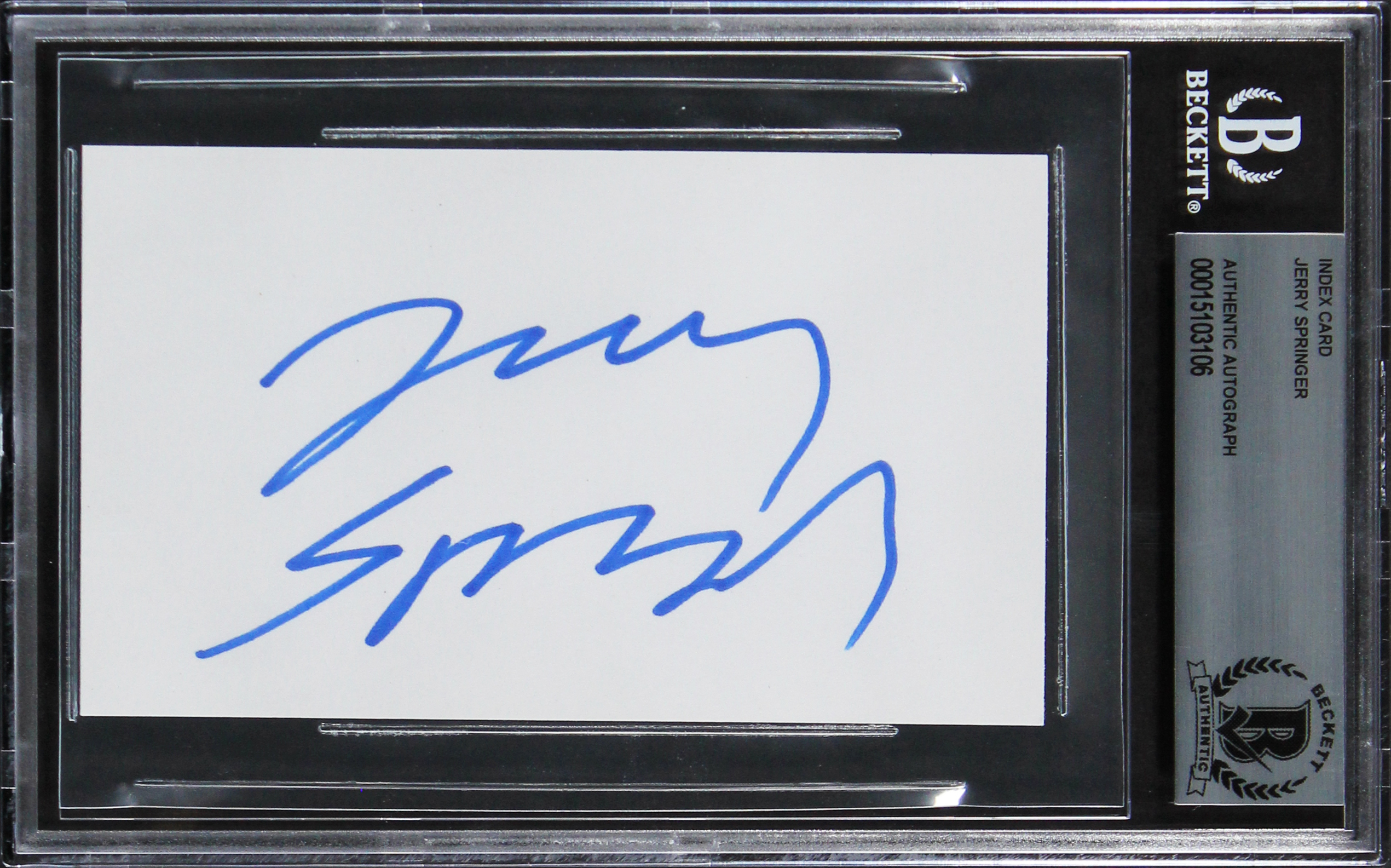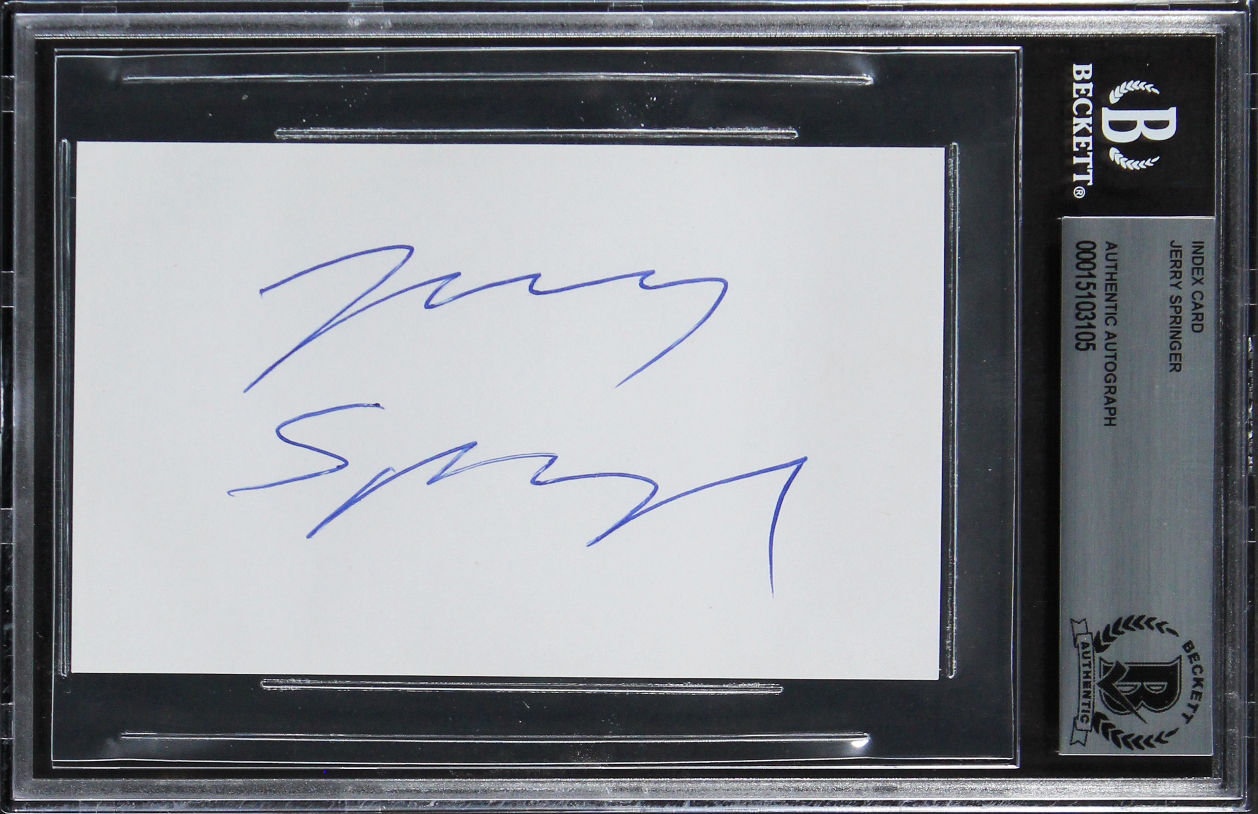 Jerry Springer The Jerry Springer Show Signed 3x5 Index Card BAS Slabbed 3