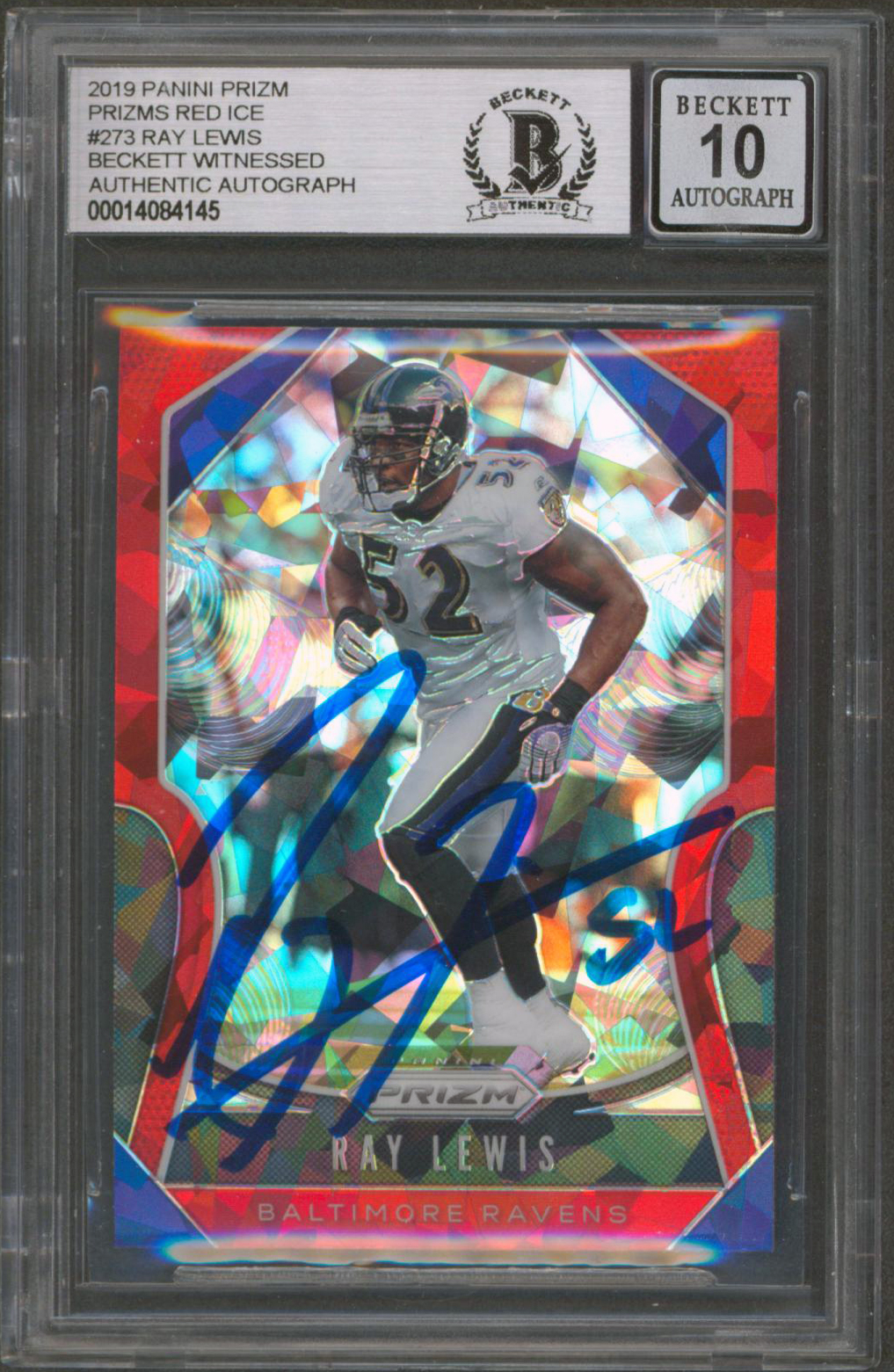 Ravens Ray Lewis Signed 2019 Panini Prizms Red Ice #273 Card Auto 10 BAS Slabbed