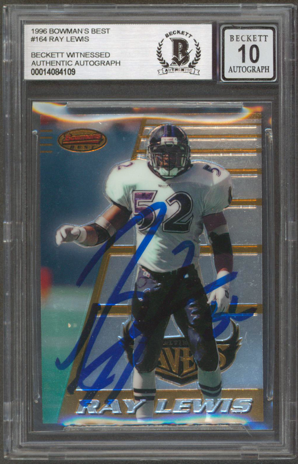Ravens Ray Lewis Signed 1996 Bowman's Best #164 Rookie Card Auto 10! BAS Slabbed
