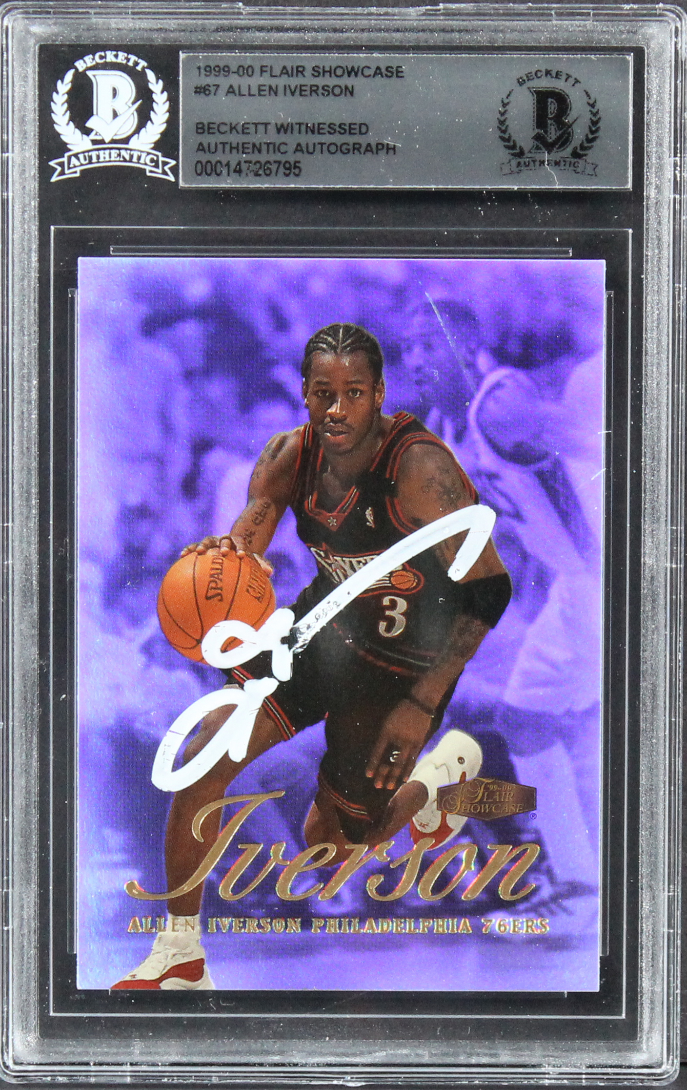 76ers Allen Iverson Authentic Signed 1999 Flair Showcase #67 Card BAS Slabbed 2