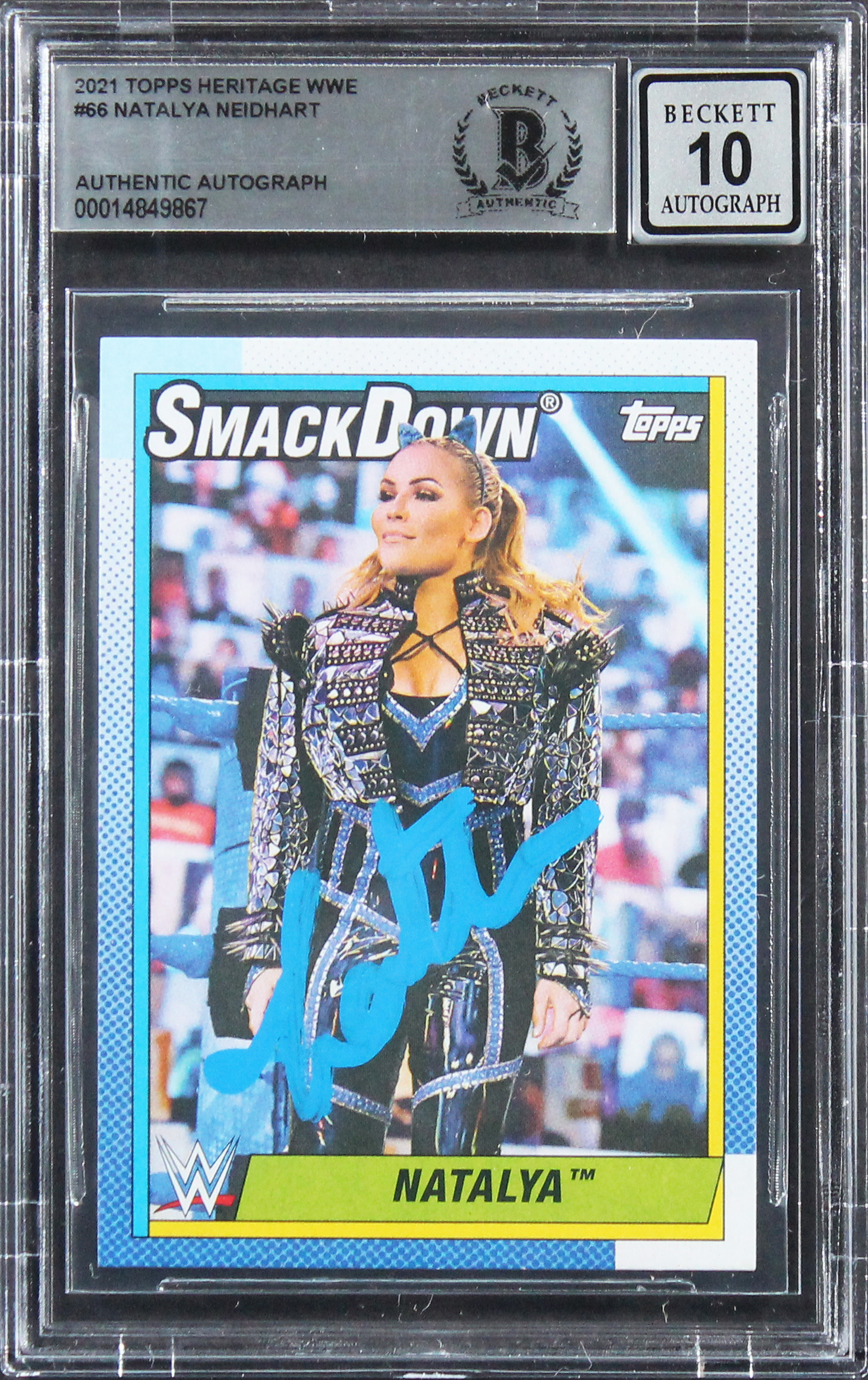 Natalya Neidhart Signed 2021 Topps Heritage WWE #66 Card Auto 10! BAS Slabbed