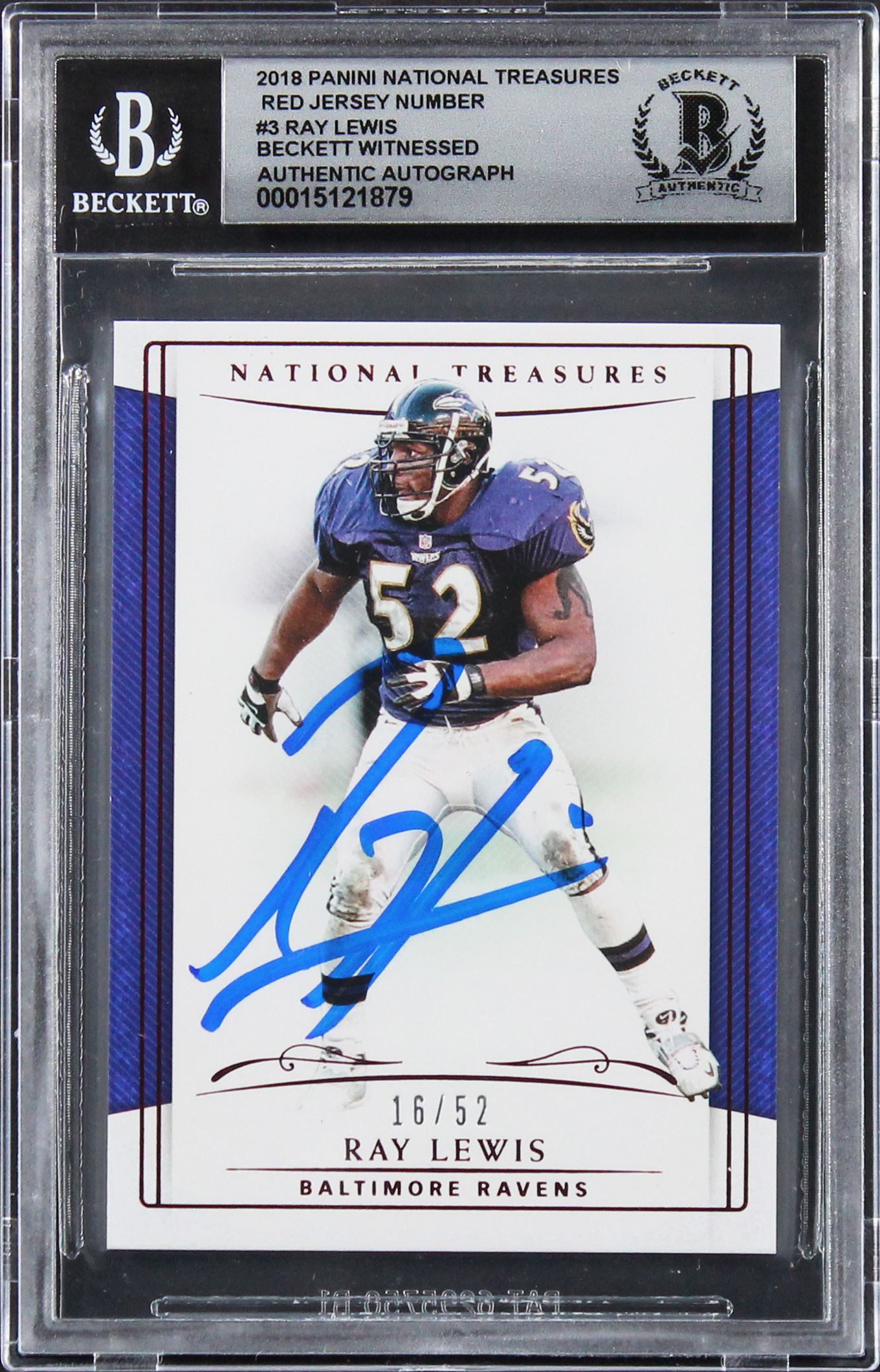 Ray Lewis Signed 2018 National Treasures Jersey #3 16/52 Card Auto 10 BAS Slab