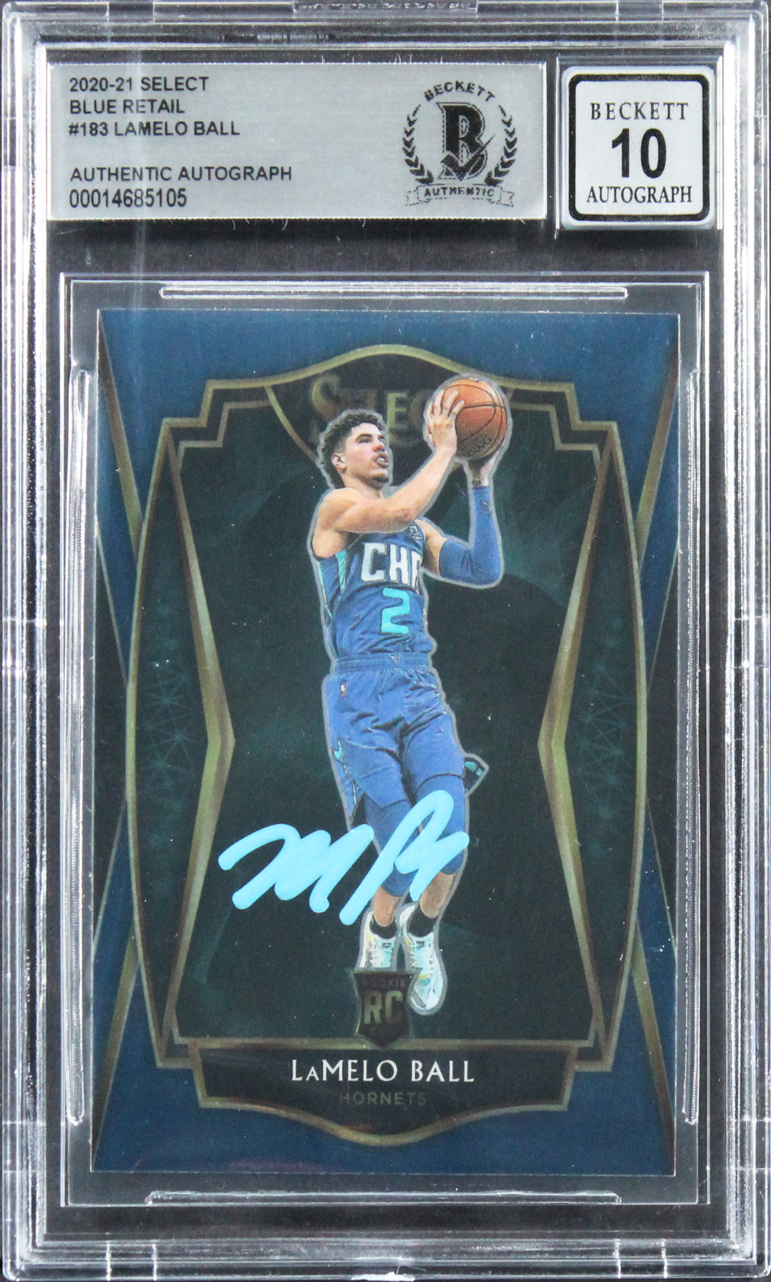 Hornets LaMelo Ball Signed 2020 Select Blue Retail #183 RC Card Auto 10 BAS Slab