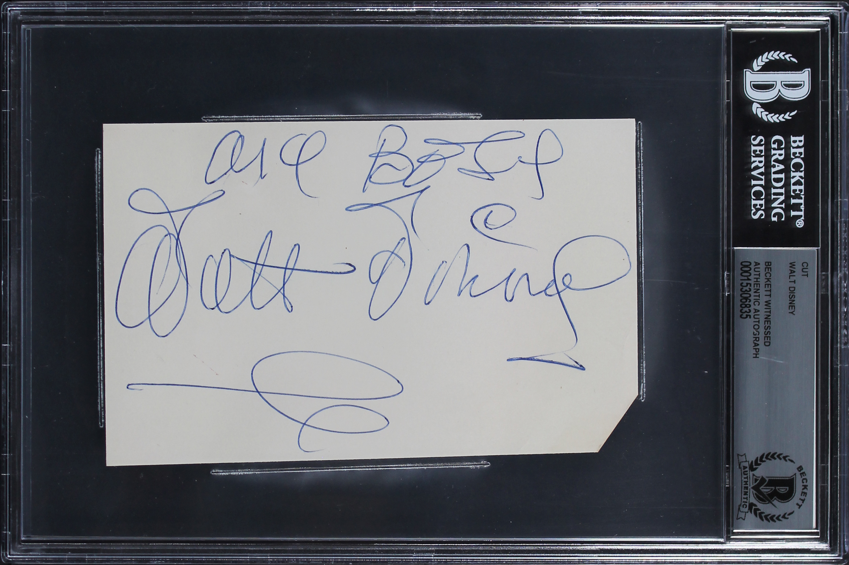 Walt Disney My Best Authentic Signed 3.75x5.6 Cut Signature BAS Slabbed