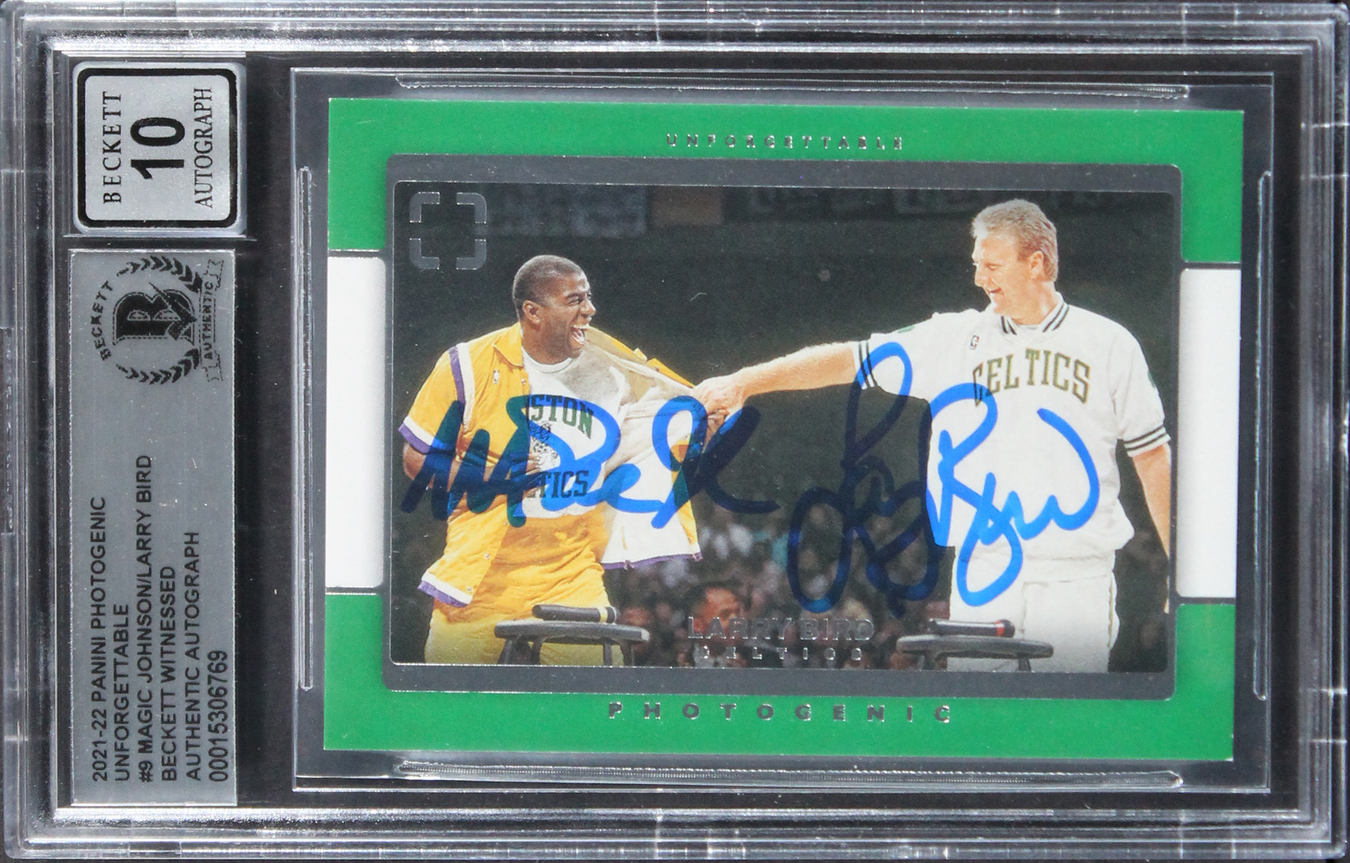 Magic Johnson & Larry Bird Signed '21 Panini Photogenic #9 Card Auto 10 BAS Slab