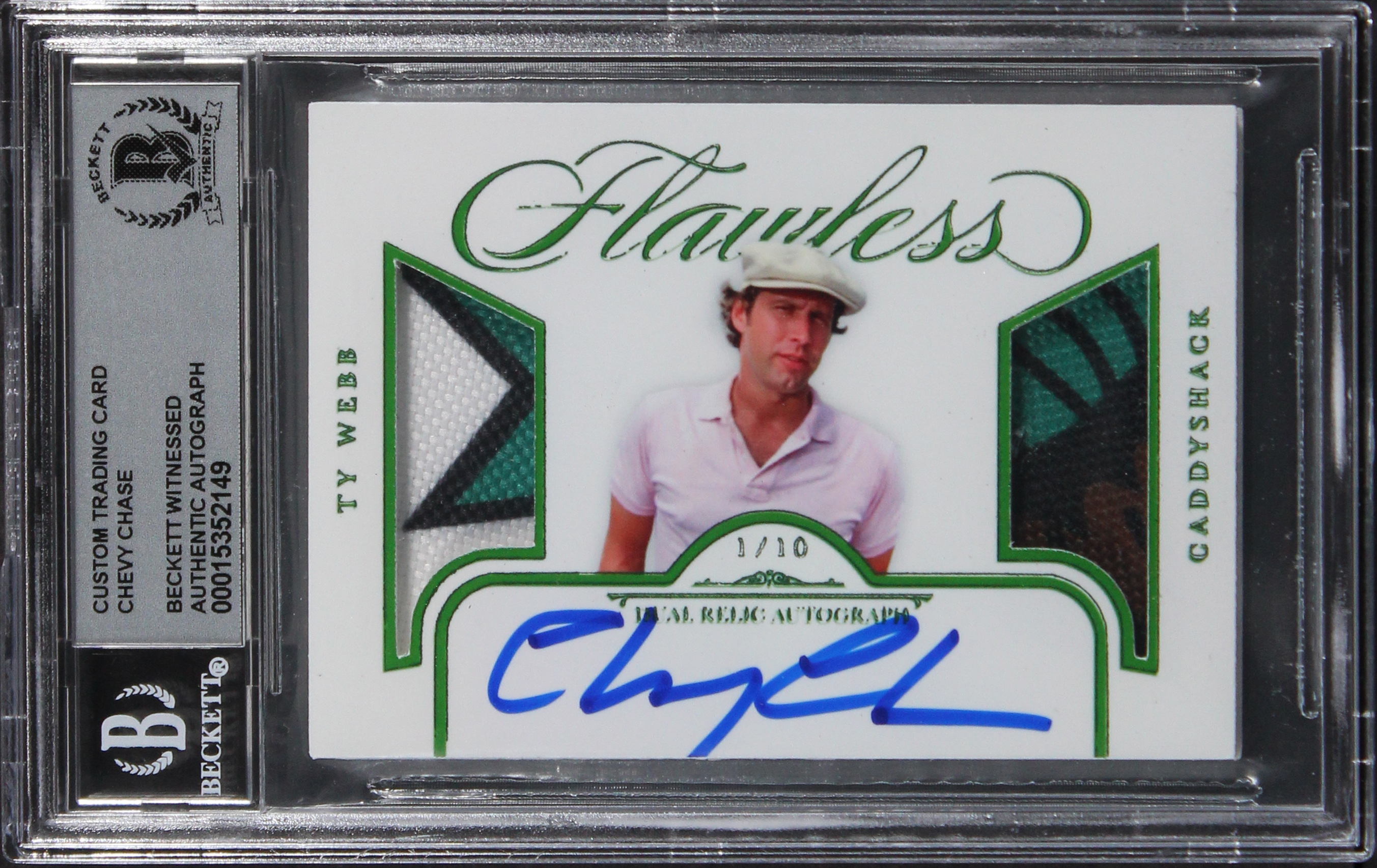 Chevy Chase Caddyshack Signed Green #1/10 Trading Patch Card Auto 10 BAS Slabbed