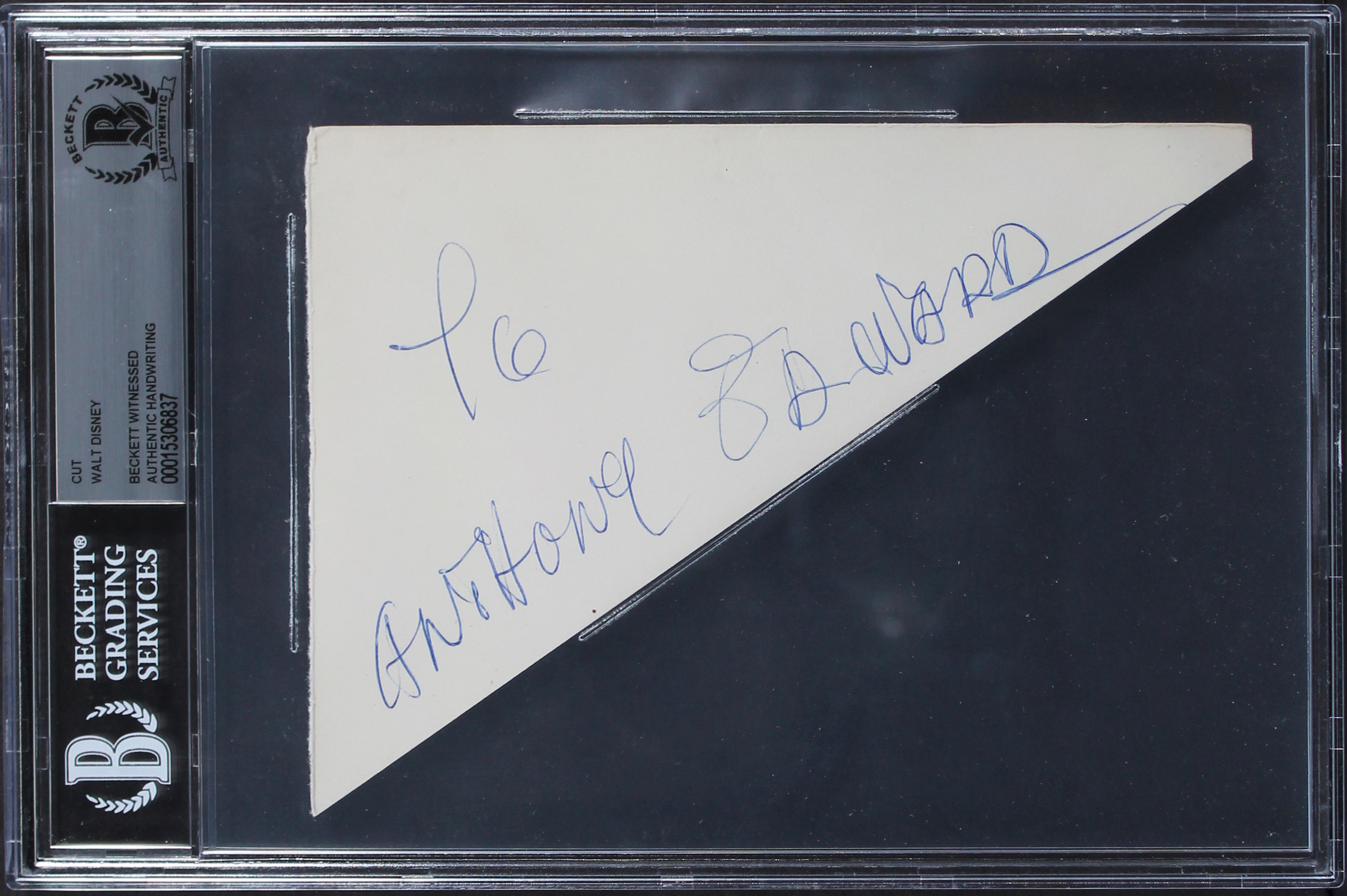 Walt Disney To Anthony Edward Authentic 4.75x6.5 Handwriting Sample BAS Slabbed