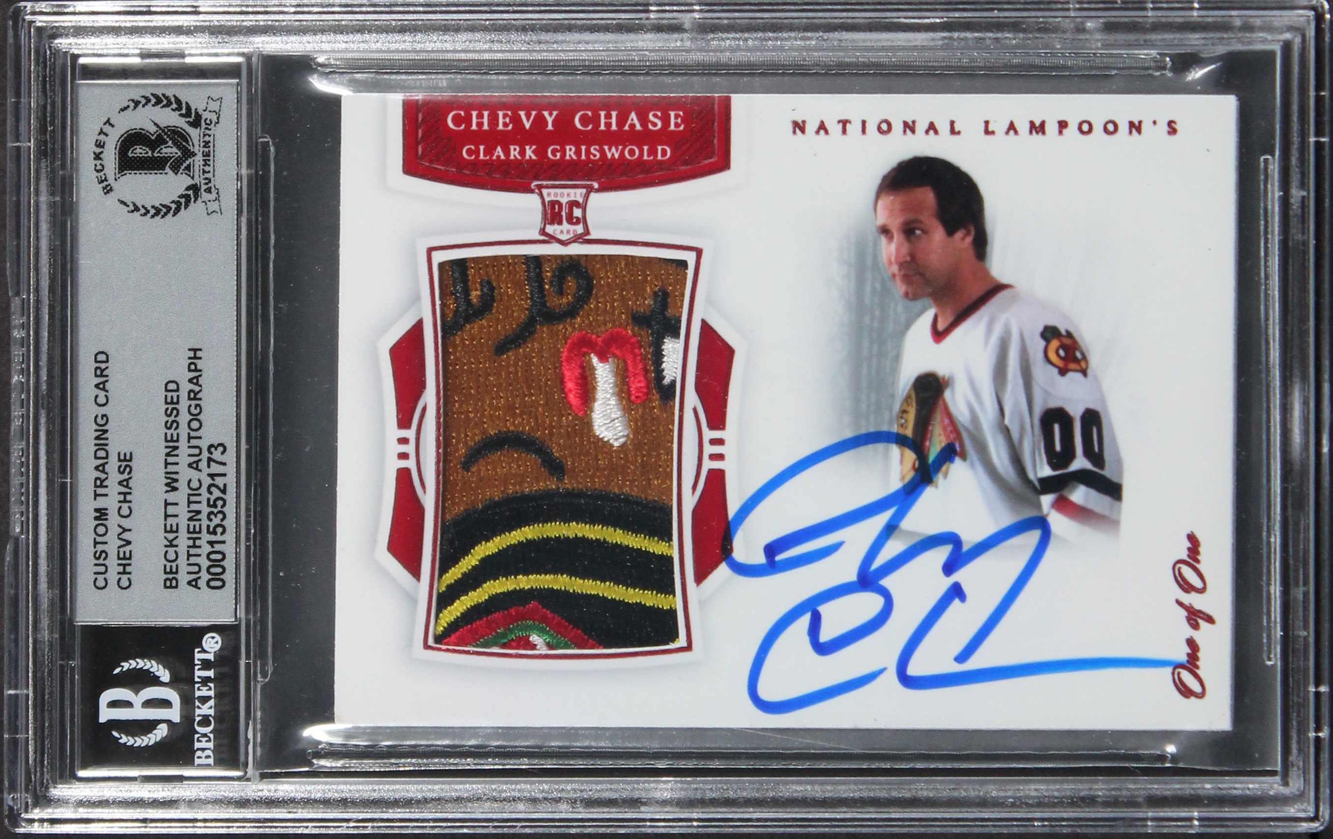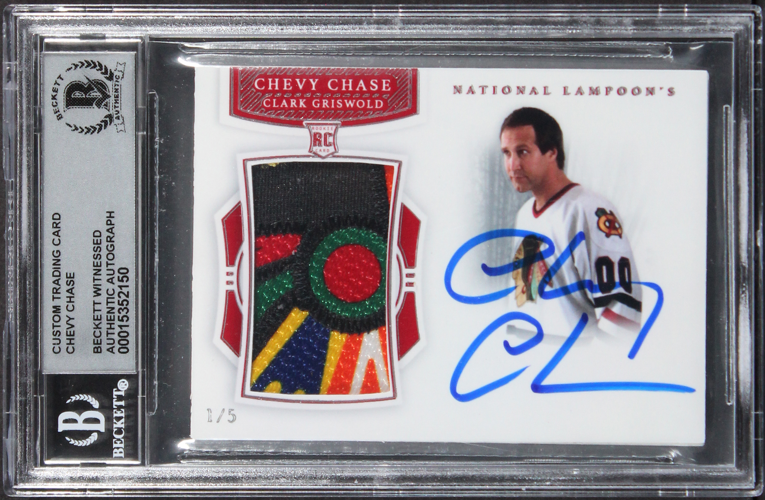 Chevy Chase Signed One of One Red Custom Patch Trading Card Auto 10! BAS Slab 2