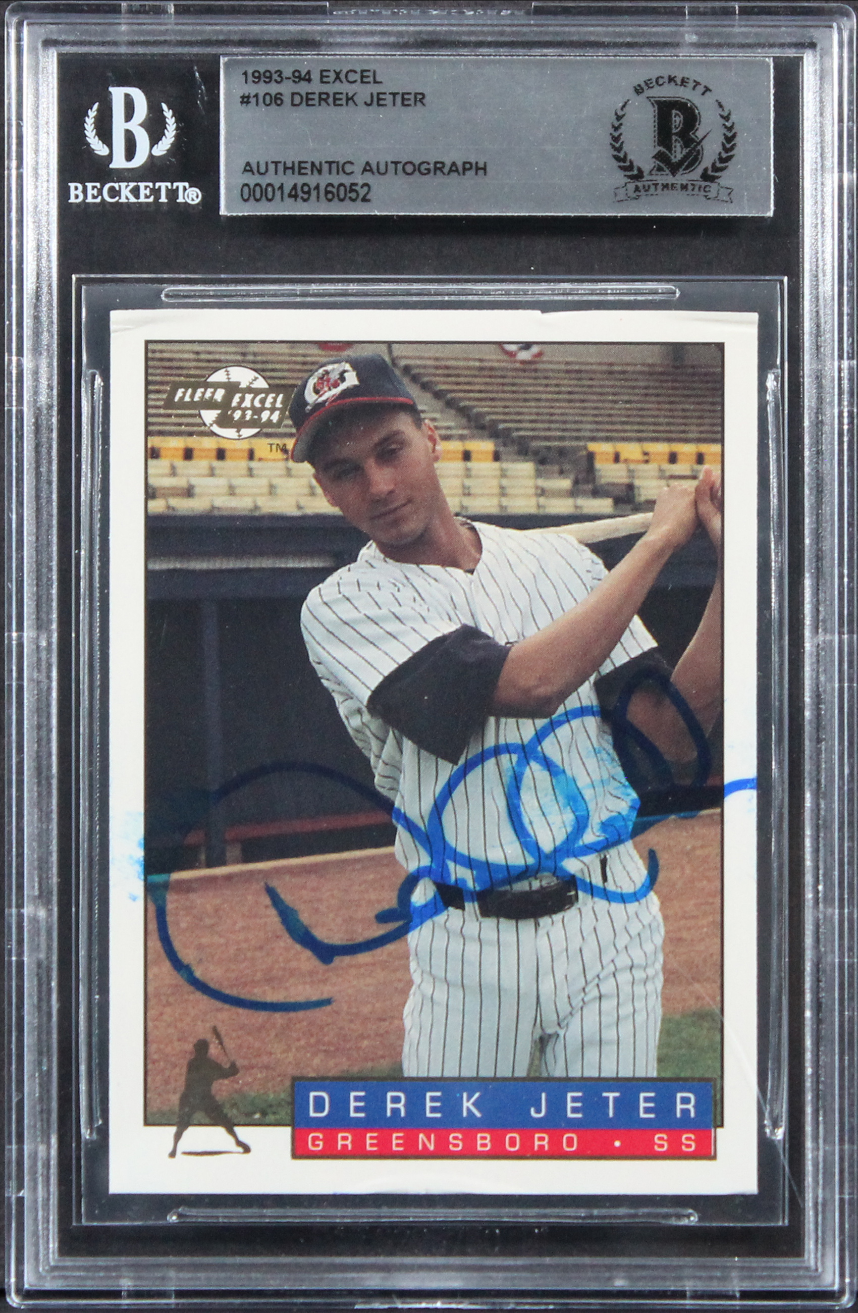 Yankees Derek Jeter Authentic Signed 1993 Excel #106 Rookie Card BAS Slabbed