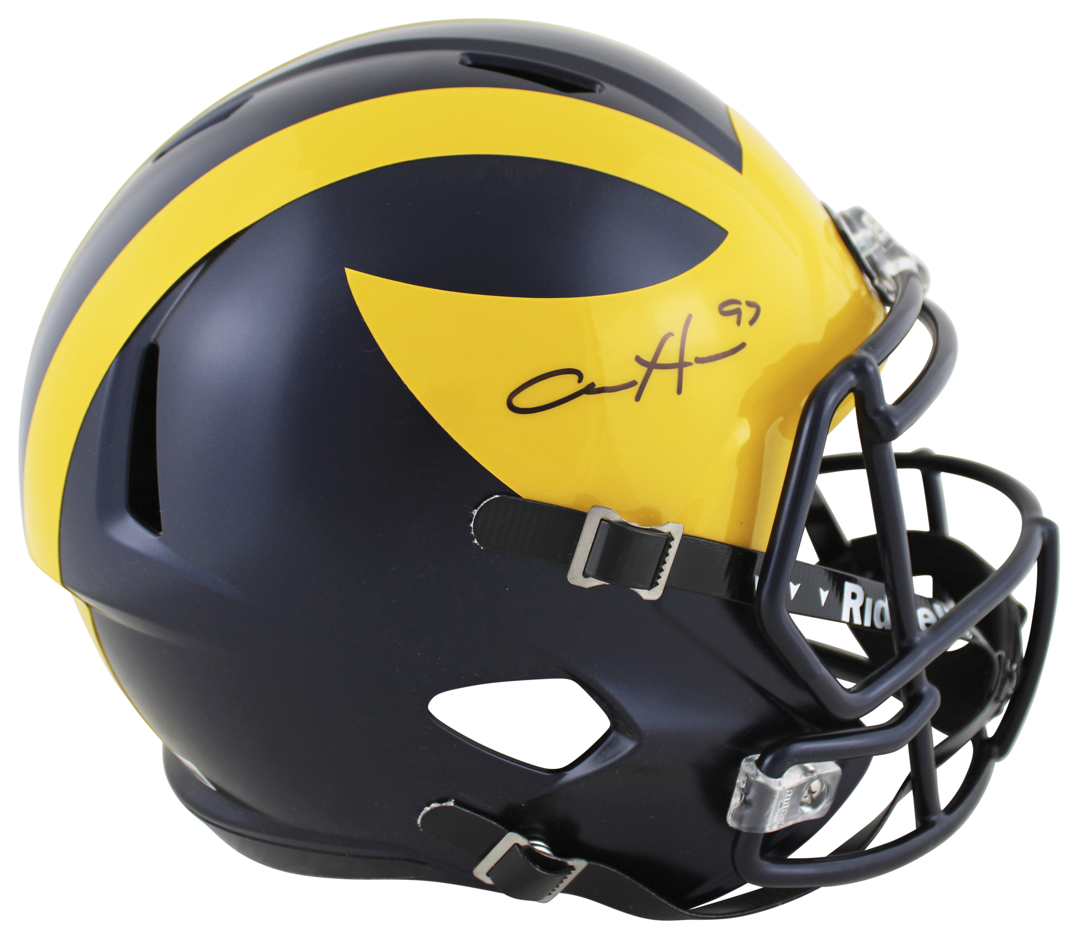 Michigan Aidan Hutchinson Signed Full Size Speed Rep Helmet w/ Black Sig BAS Wit