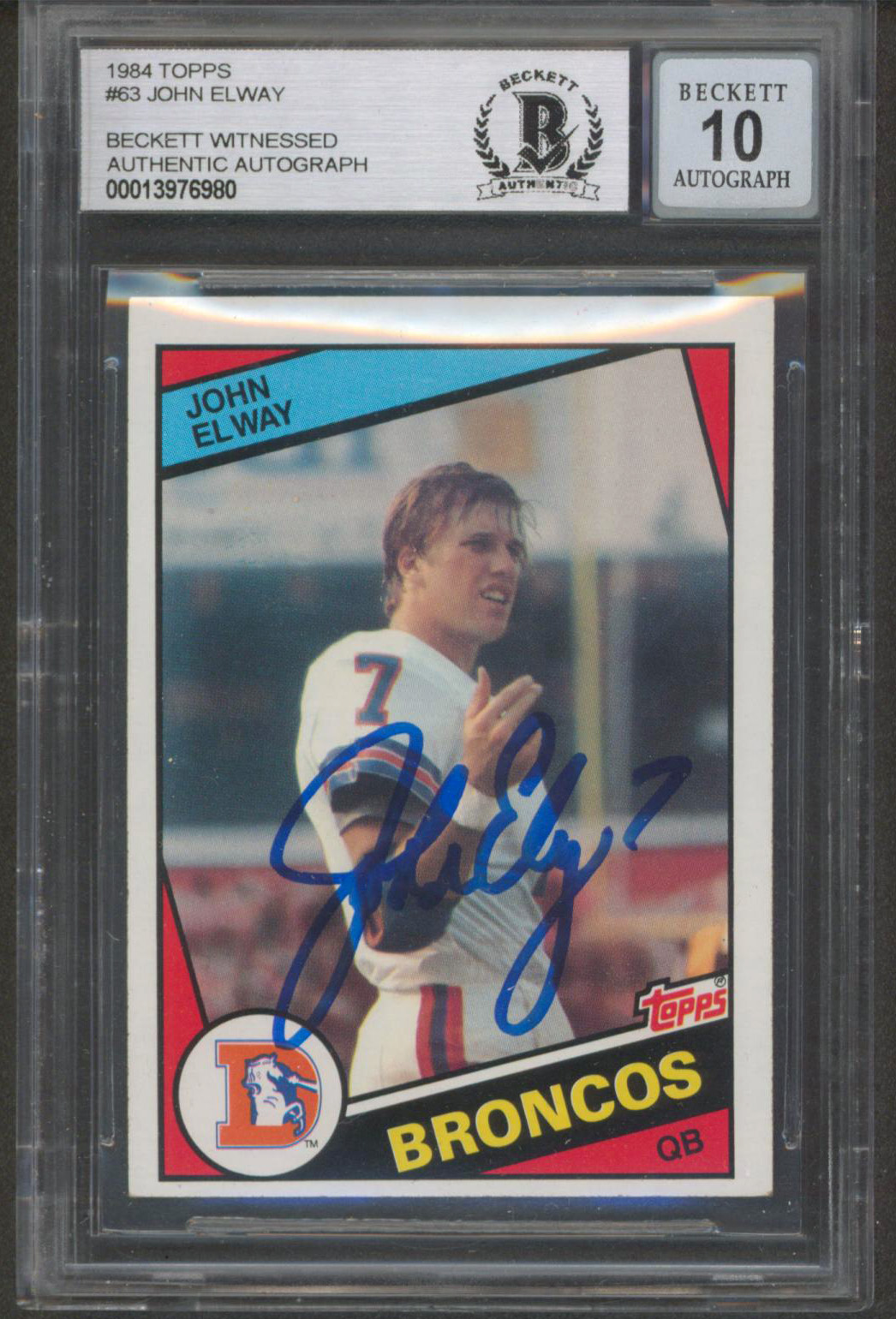 Broncos John Elway Signed 1984 Topps #63 Card (Creased) Auto Gem 10! BAS Slabbed