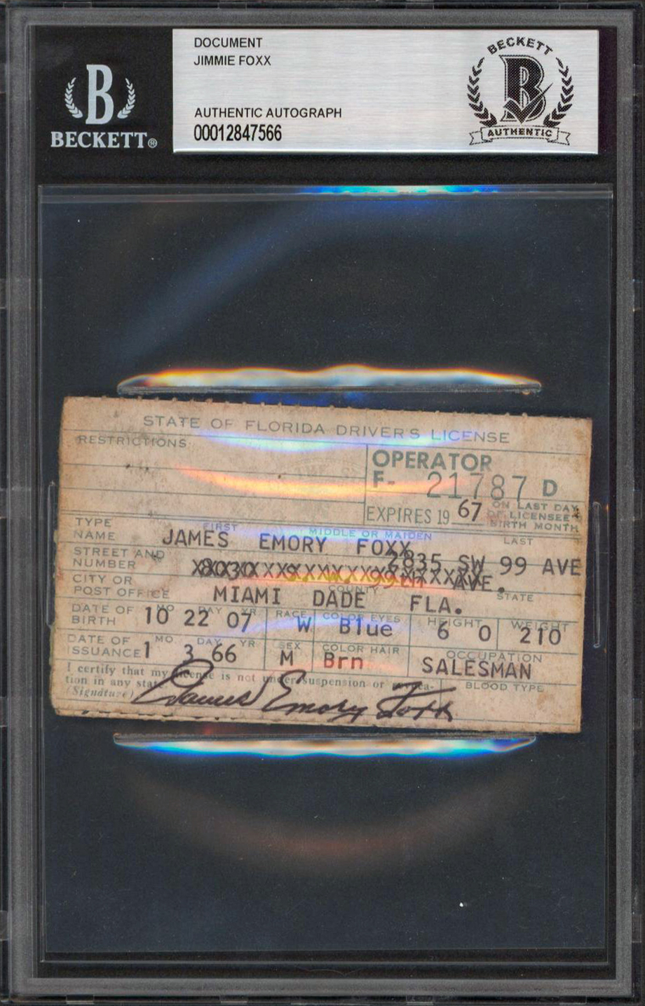 Red Sox Jimmie Foxx Signed State Of Florida Drivers License BAS Slabbed