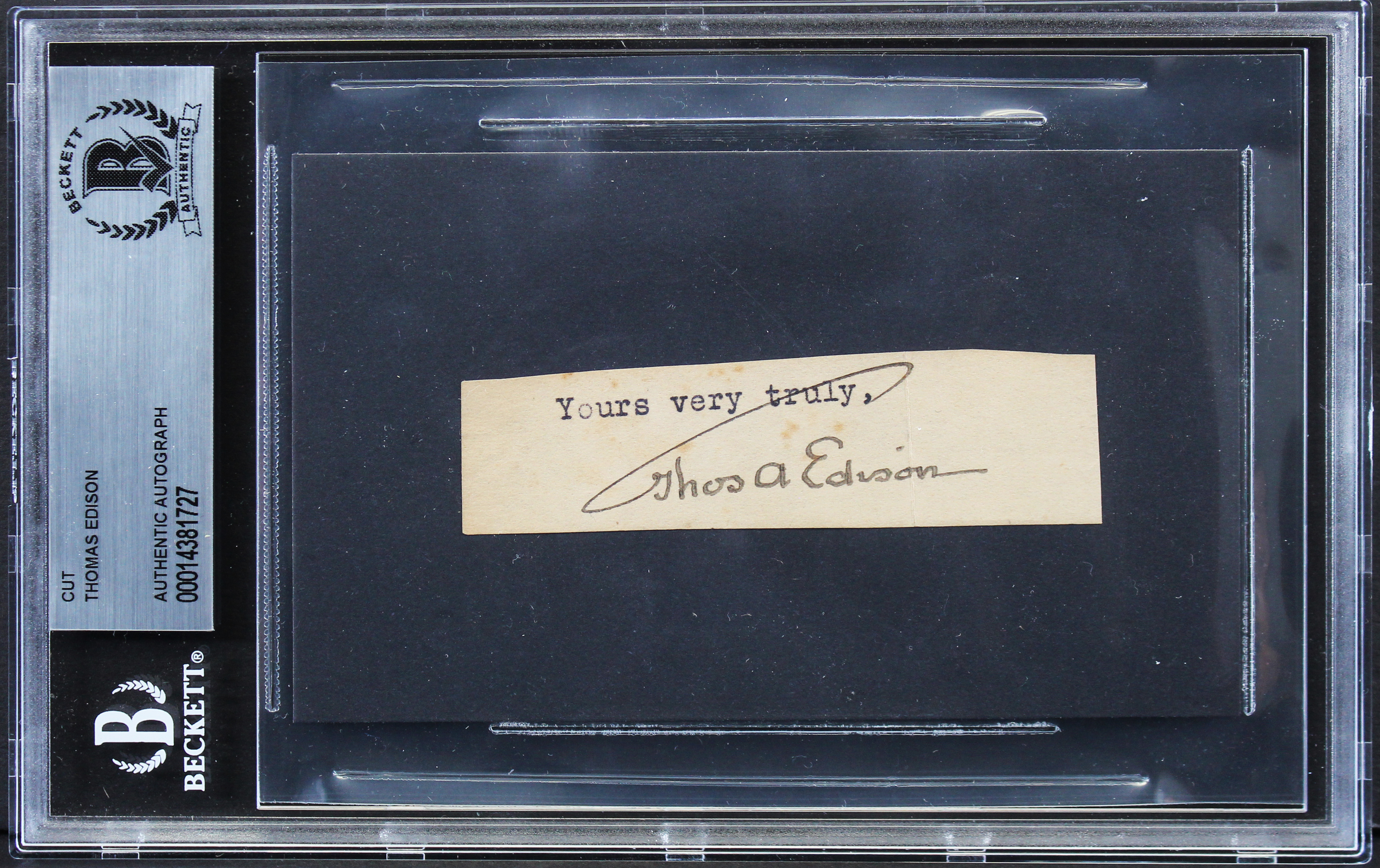 Thomas Edison Authentic Signed .85x3.25 Cut Signature Autographed BAS Slabbed