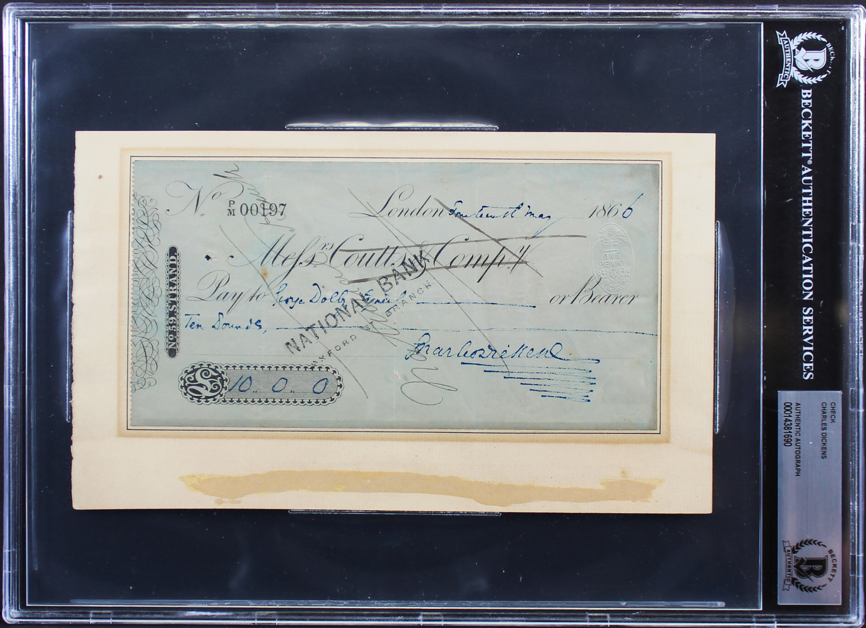 Charles Dickens Authentic Signed 5.25x9 1866 Check Autographed BAS Slabbed