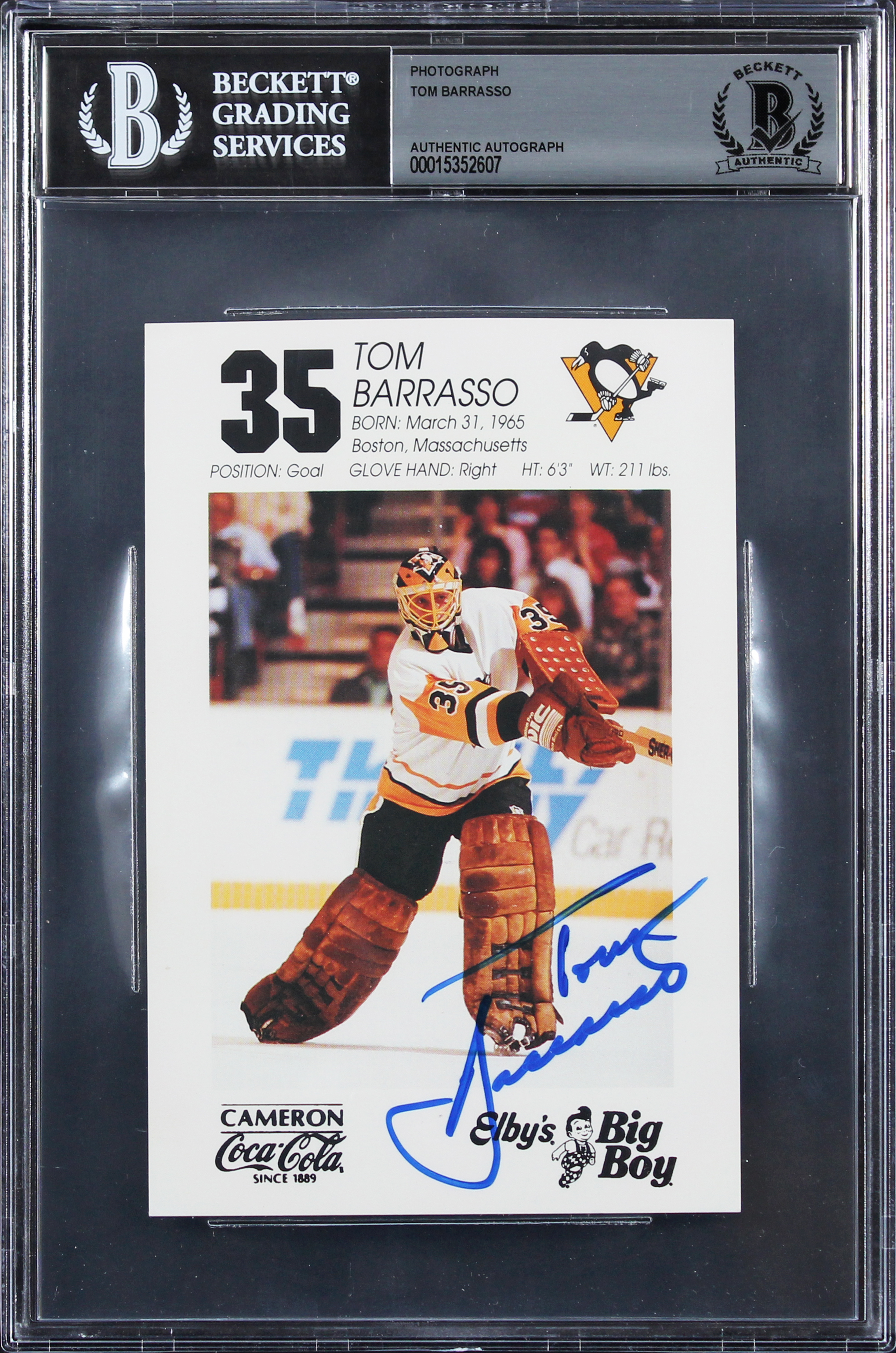 Penguins Tom Barrasso Authentic Signed 4x6 Cut Signature Autographed BAS Slabbed