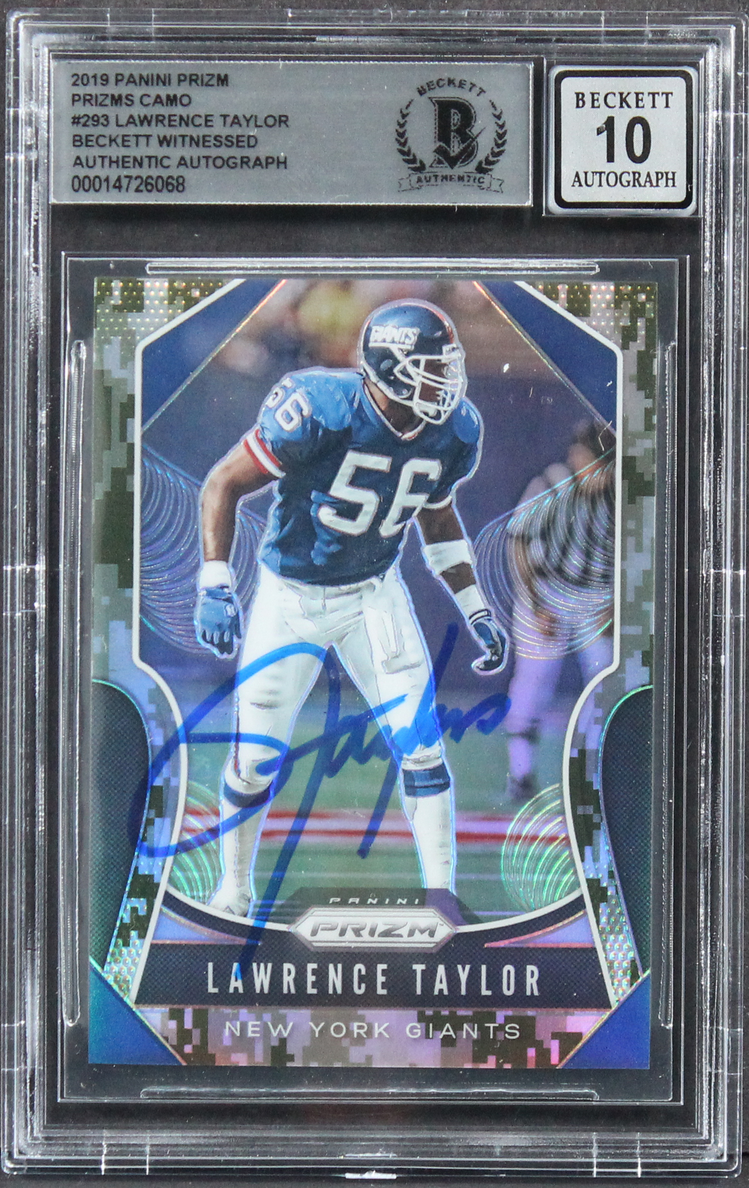 Giants Lawrence Taylor Signed 2019 Panini Prizm Camo #293 Card Auto 10! BAS Slab