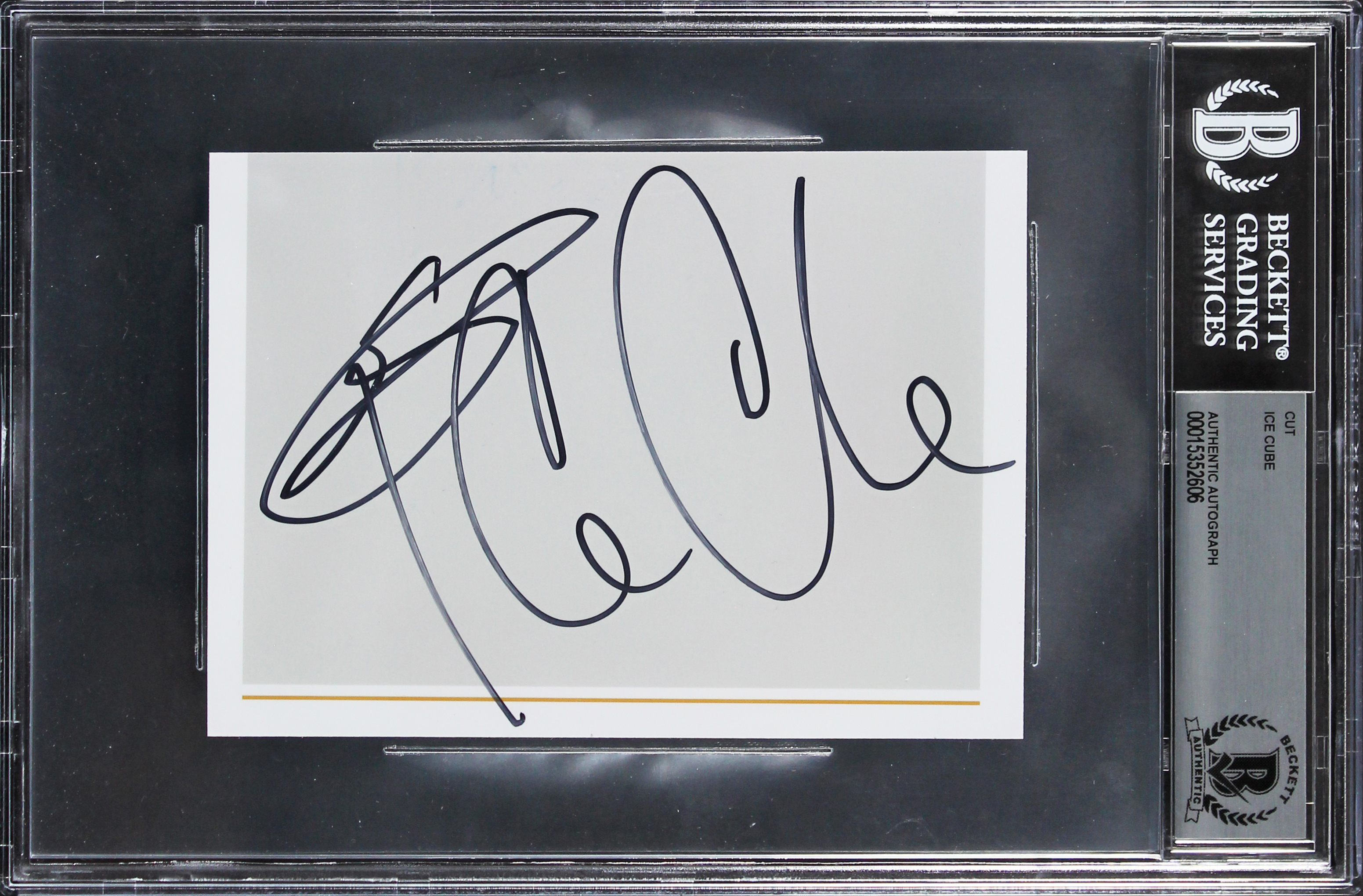 Ice Cube N.W.A Authentic Signed 3.75x5.5 Cut Signature Autographed BAS Slabbed