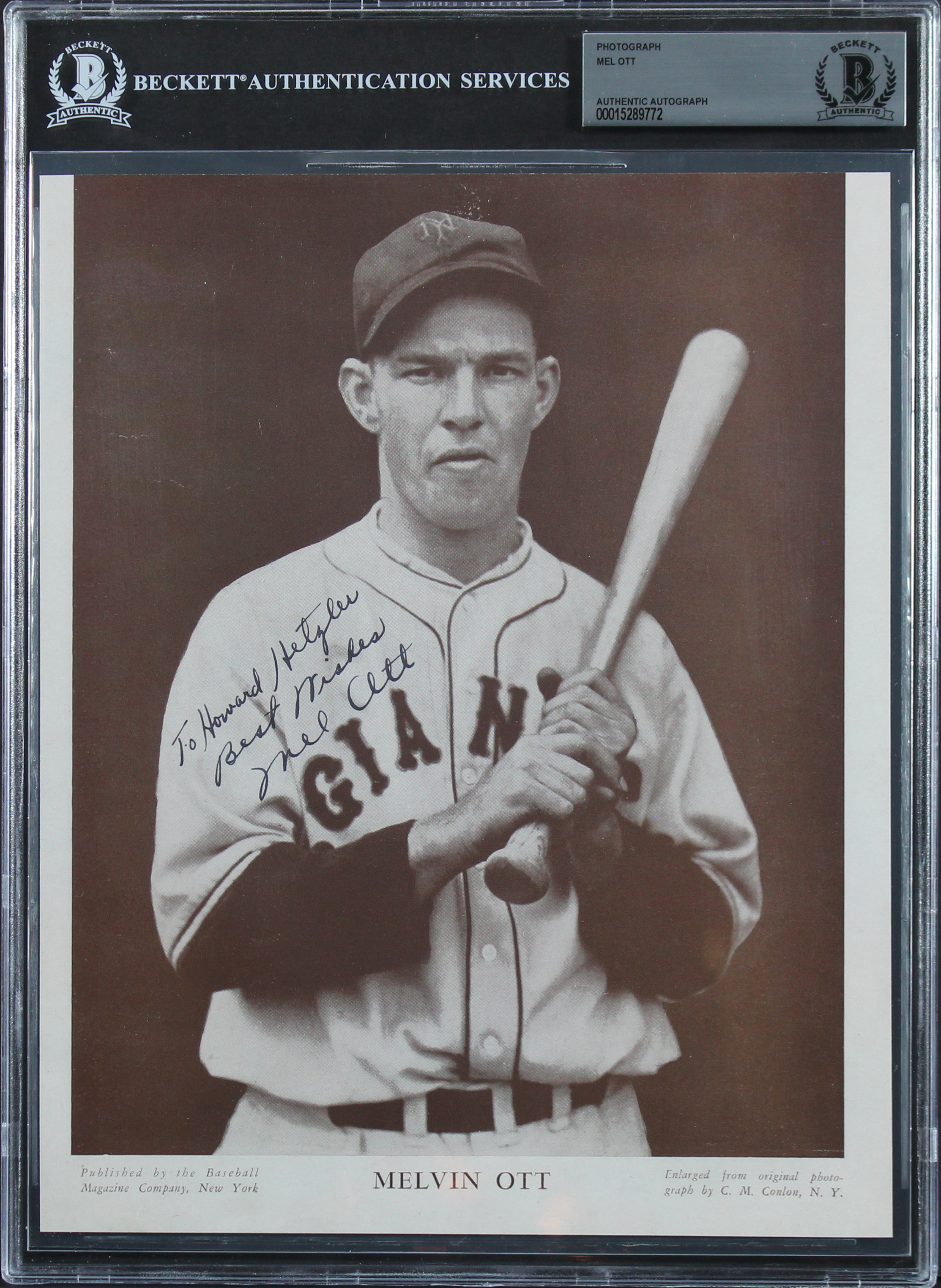 Mel Ott "To Howard Hetzler Best Wishes" Authentic Signed 8x10 Photo BAS Slabbed
