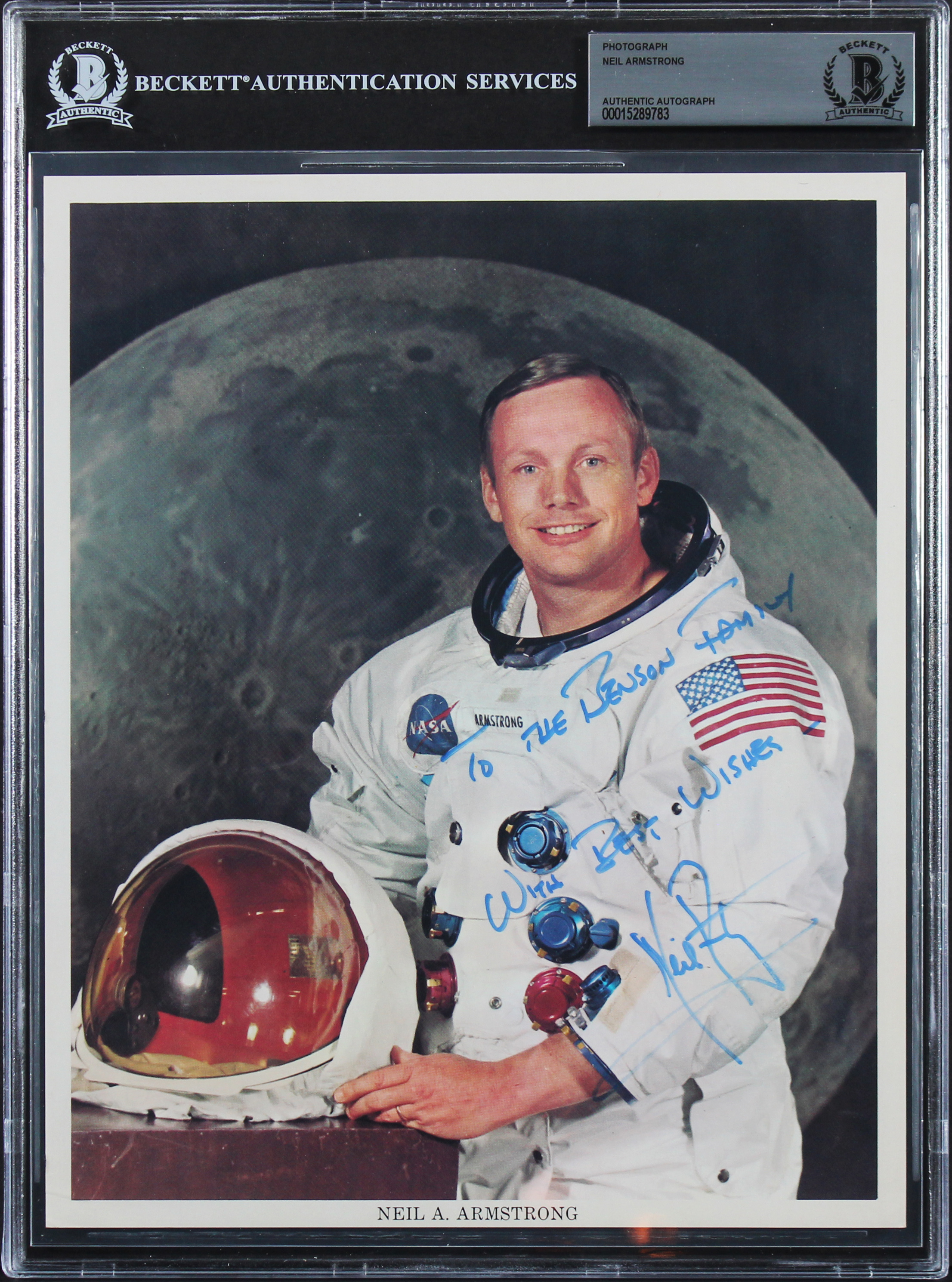 Neil Armstrong Apollo 11 "With Best Wishes" Authentic Signed 8x10 Photo BAS Slab