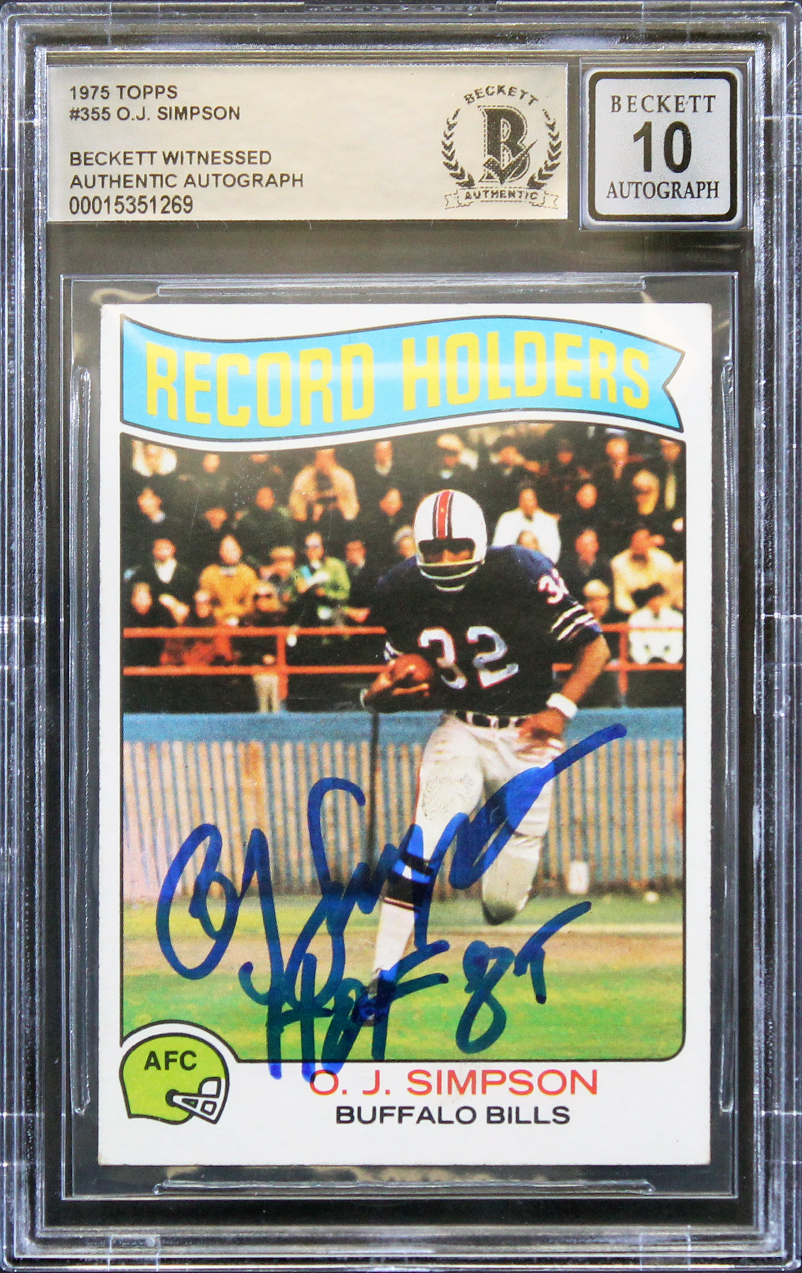 Bills O.J. Simpson "HOF 85" Signed 1975 Topps #355 Card Auto 10! BAS Slabbed