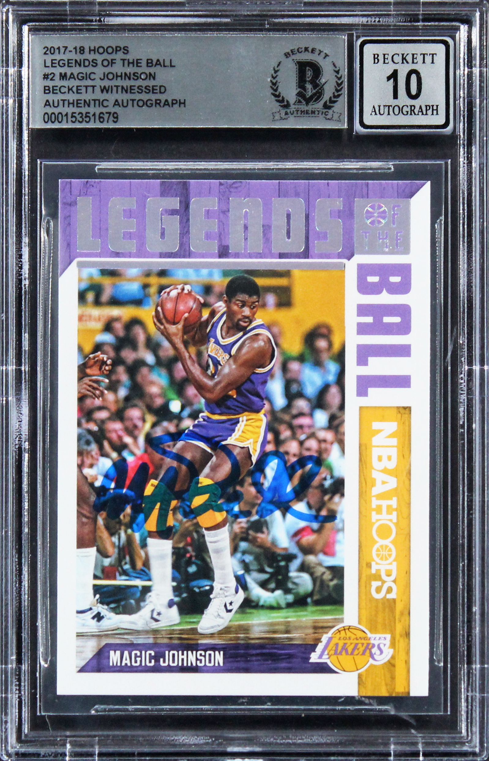 Magic Johnson Signed 2017 Hoops Legends Of The Ball #2 Card Auto 10! BAS Slabbed