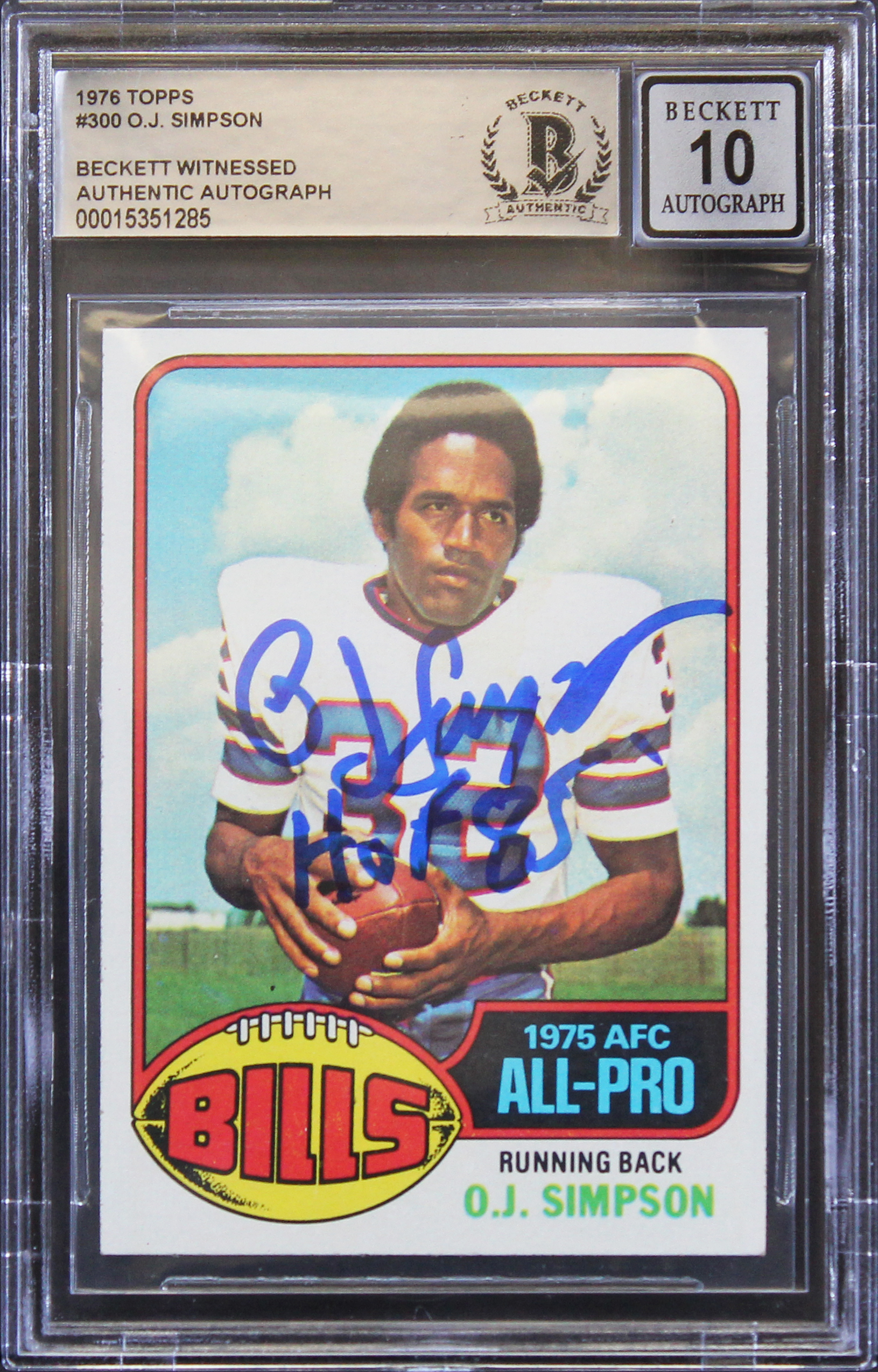 Bills O.J. Simpson "HOF 85" Signed 1976 Topps #300 Card Auto 10! BAS Slabbed