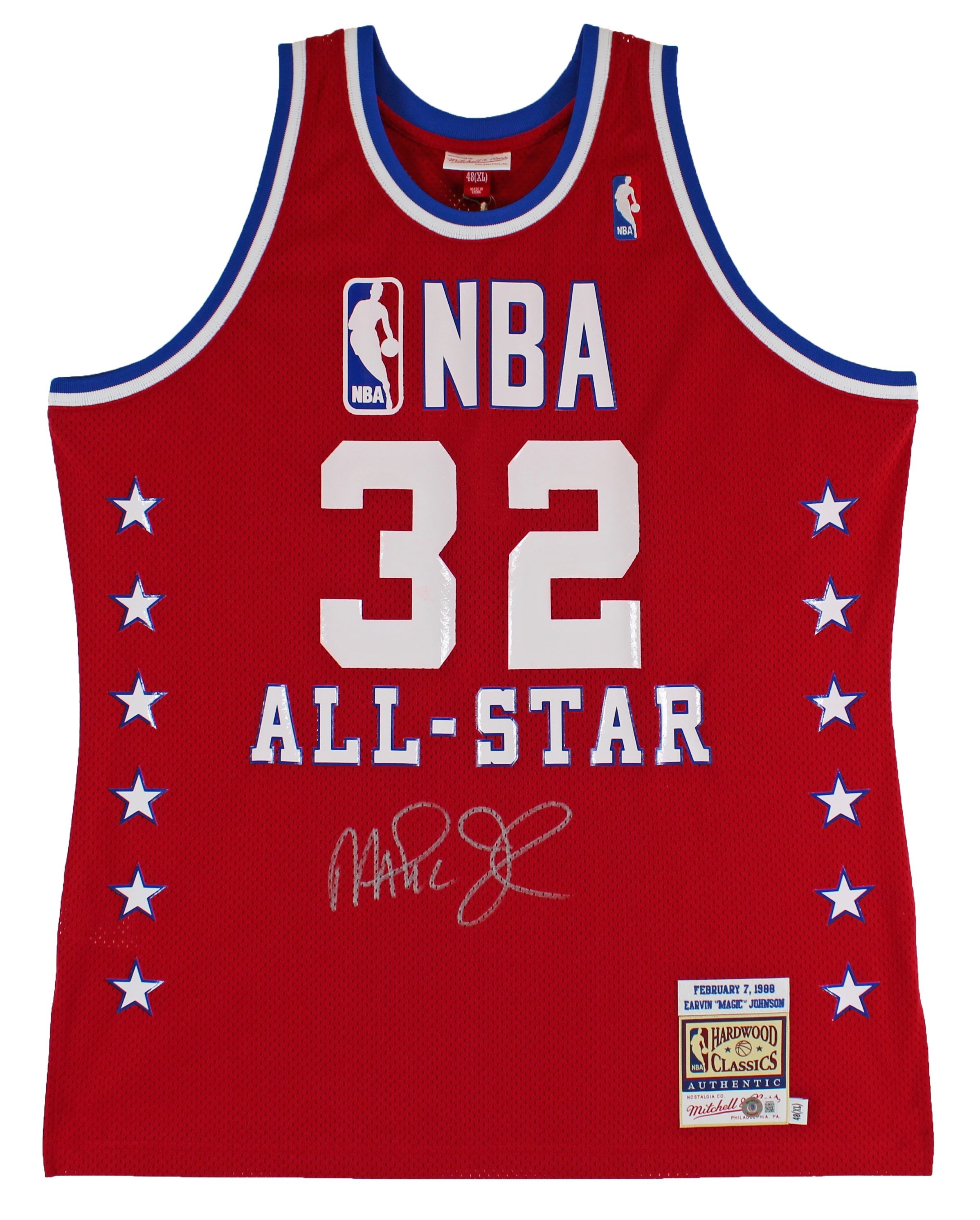 Lakers Magic Johnson Signed Red M&N 1988 All-Star Authentic Jersey BAS Witness 2