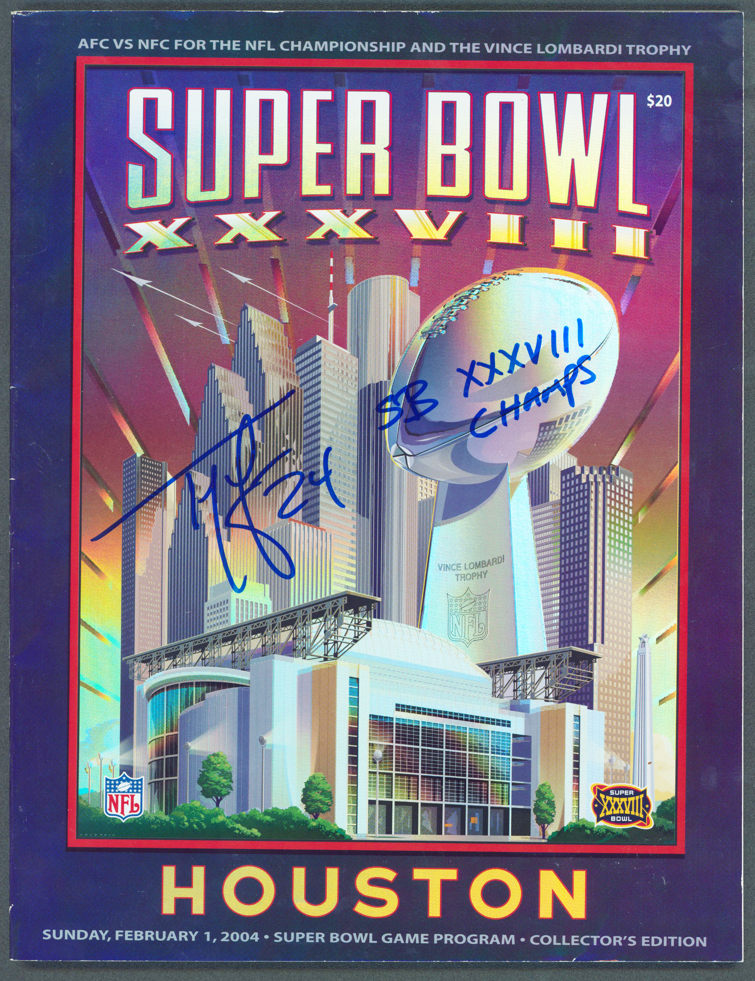 Patriots Ty Law "SB XXXVIII Champs" Signed SB XXXVIII Program BAS Wit #WK36960