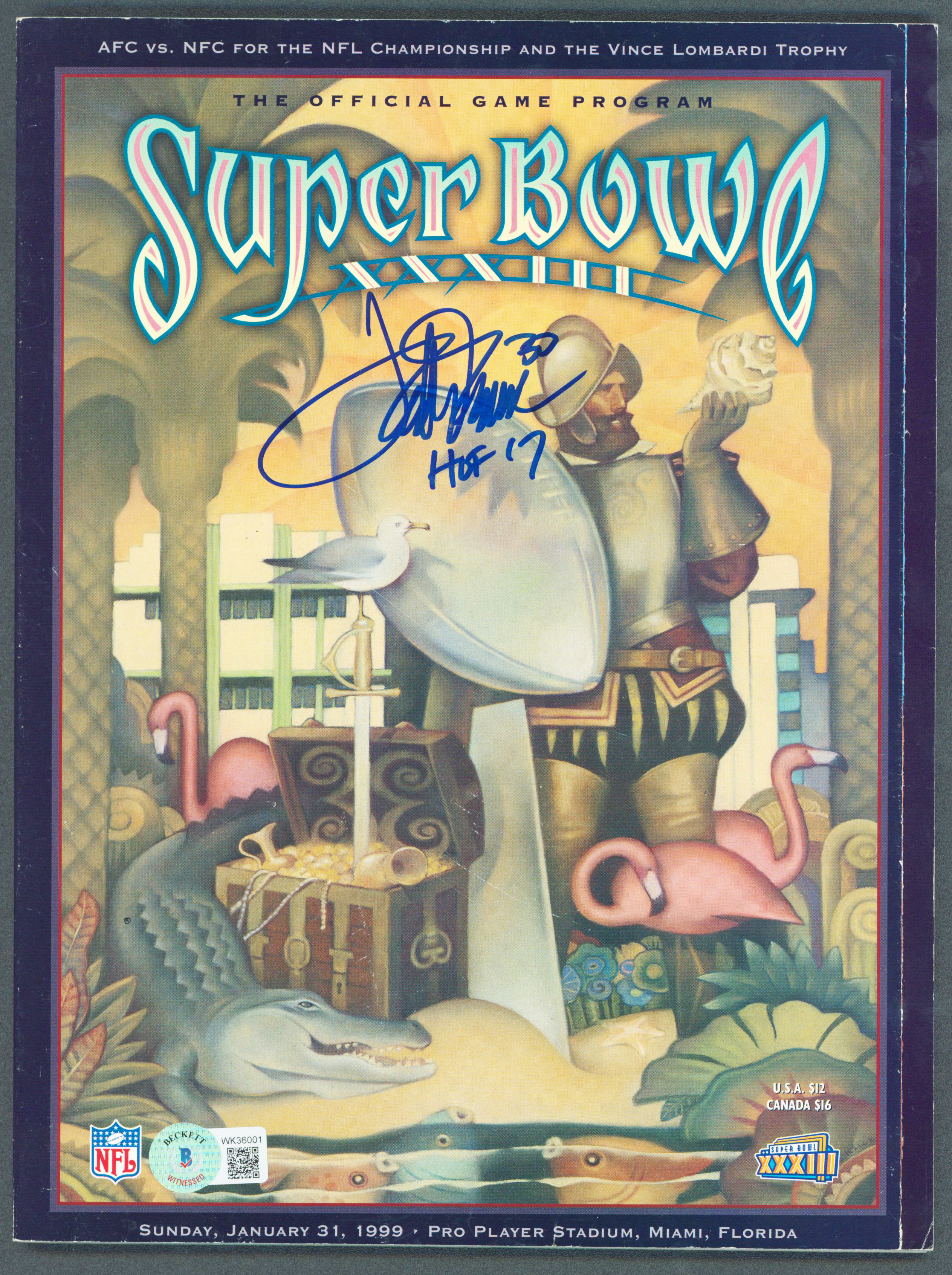 Broncos Terrell Davis "HOF 17" Signed SB XXXIIi Program BAS Witnessed #WK36001