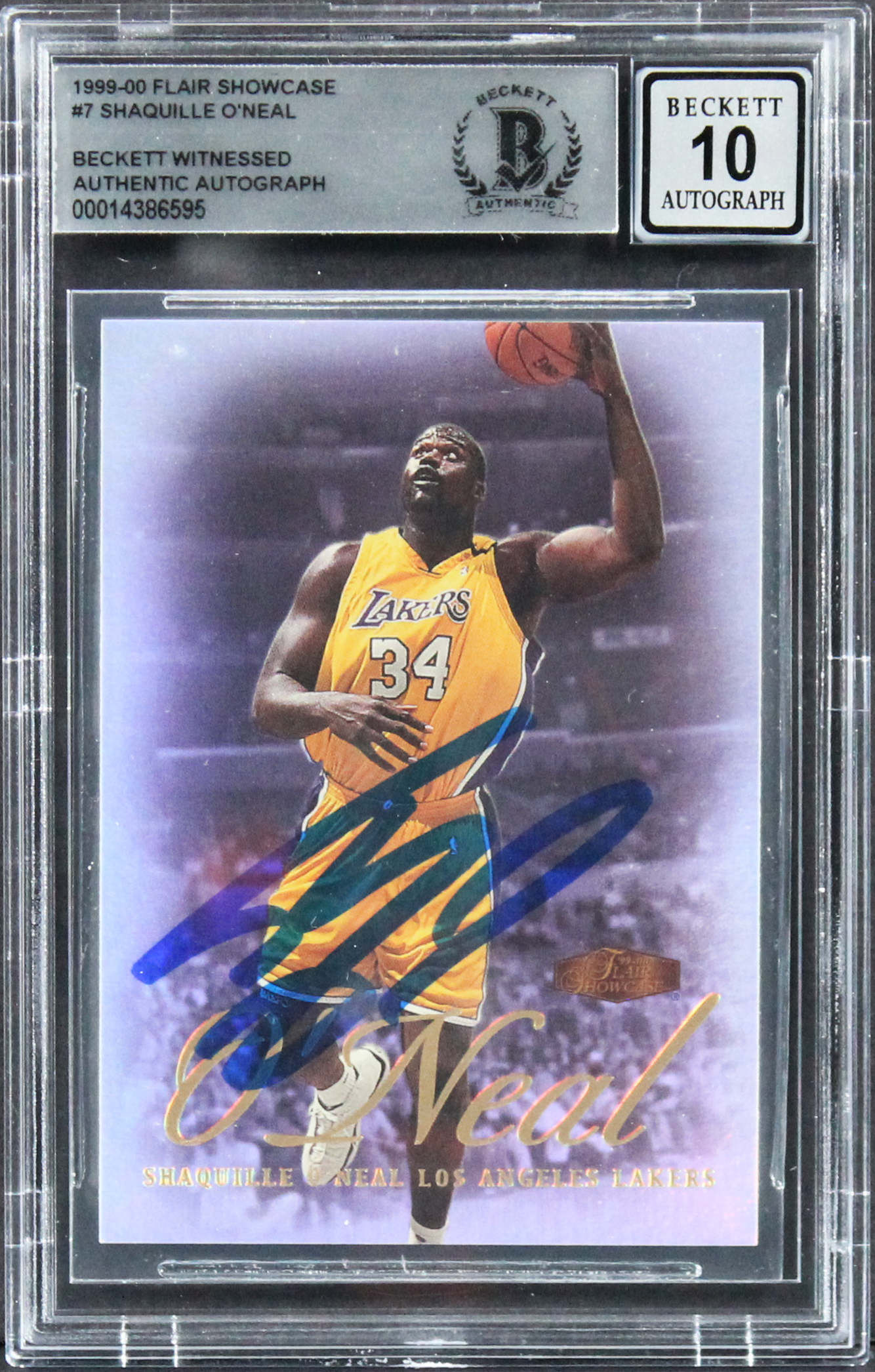 Lakers Shaquille O'Neal Signed 1999 Flair Showcase #7 Card Auto 10! BAS Slabbed