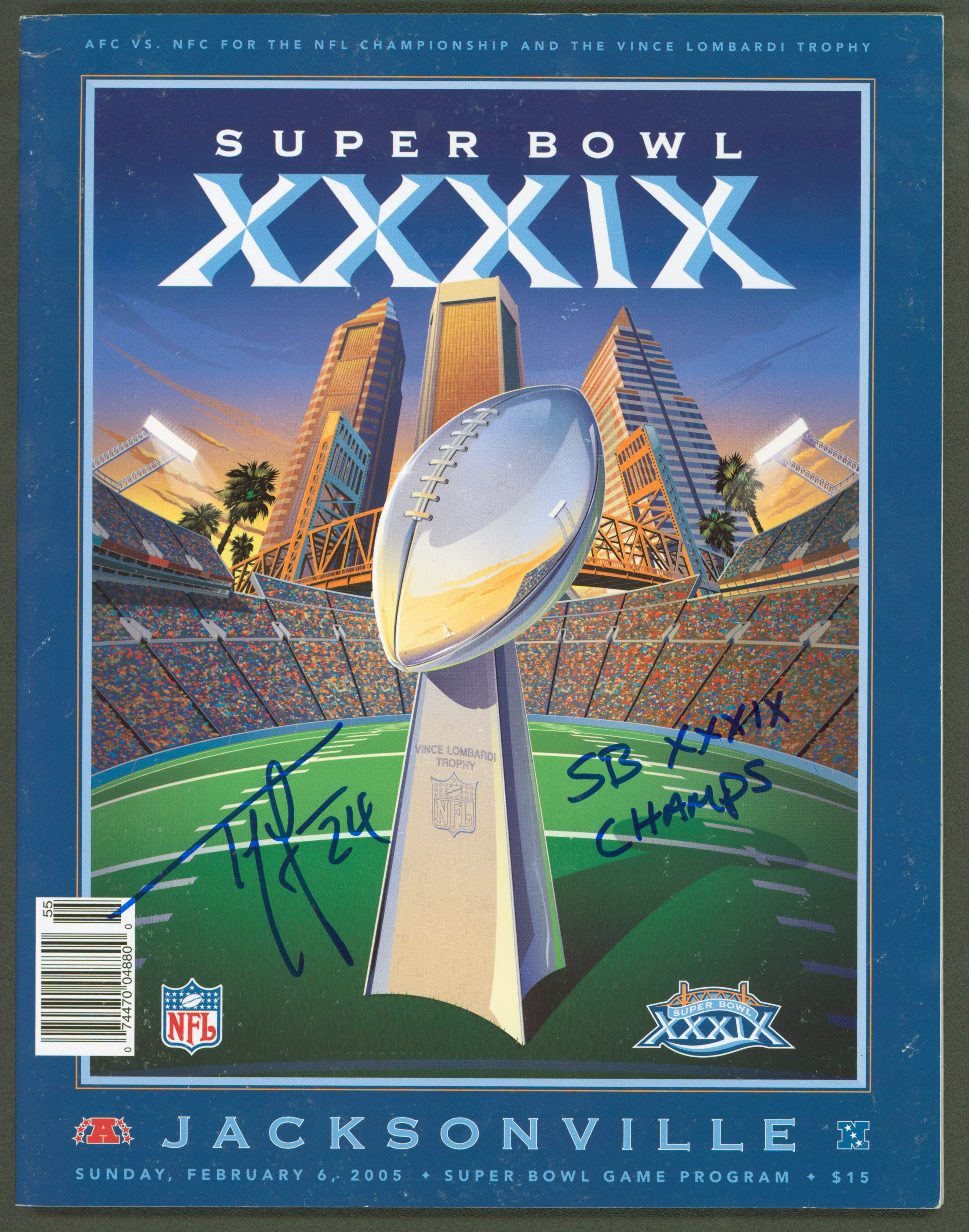 Patriots Ty Law "SB XXXIX Champs" Signed SB XXXIX Program BAS Witnessed #WK36959