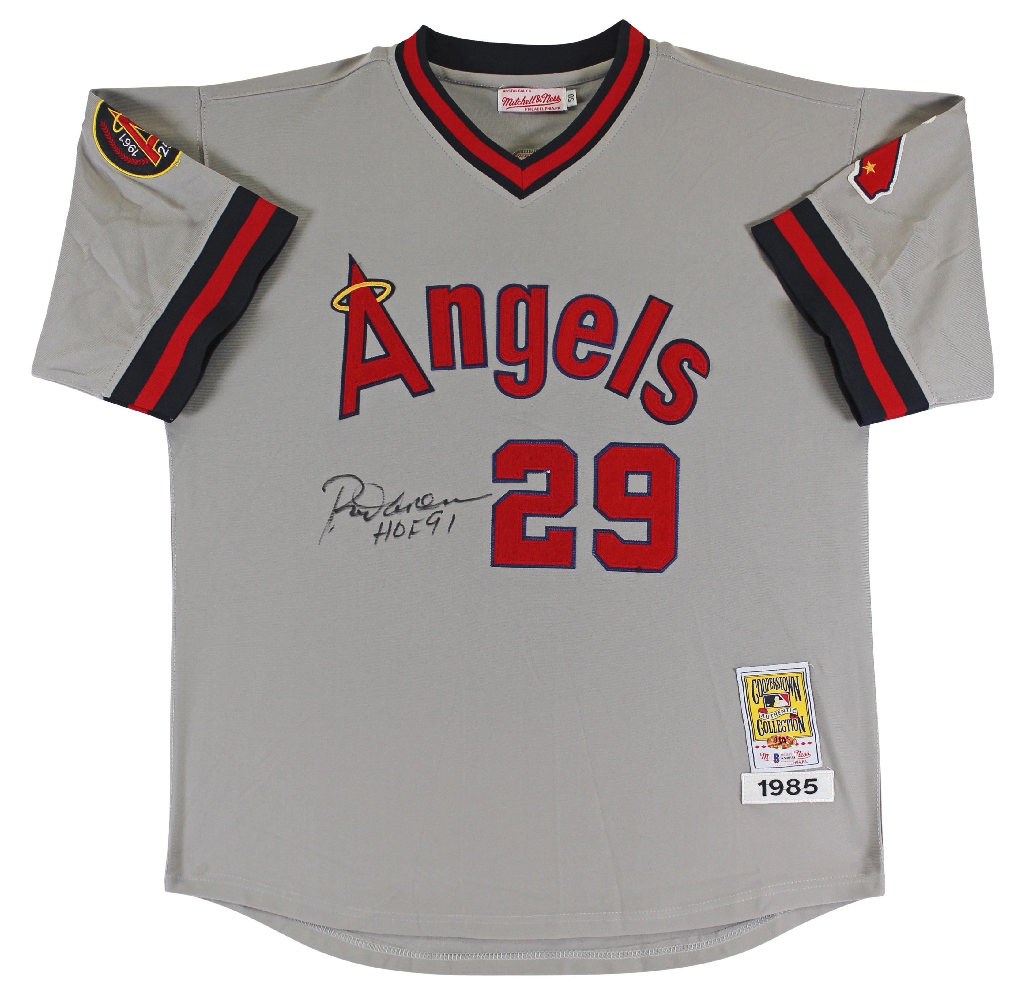 Angels Rod Carew "HOF 91" Signed Grey Mitchell & Ness CC Jersey BAS #AA48358