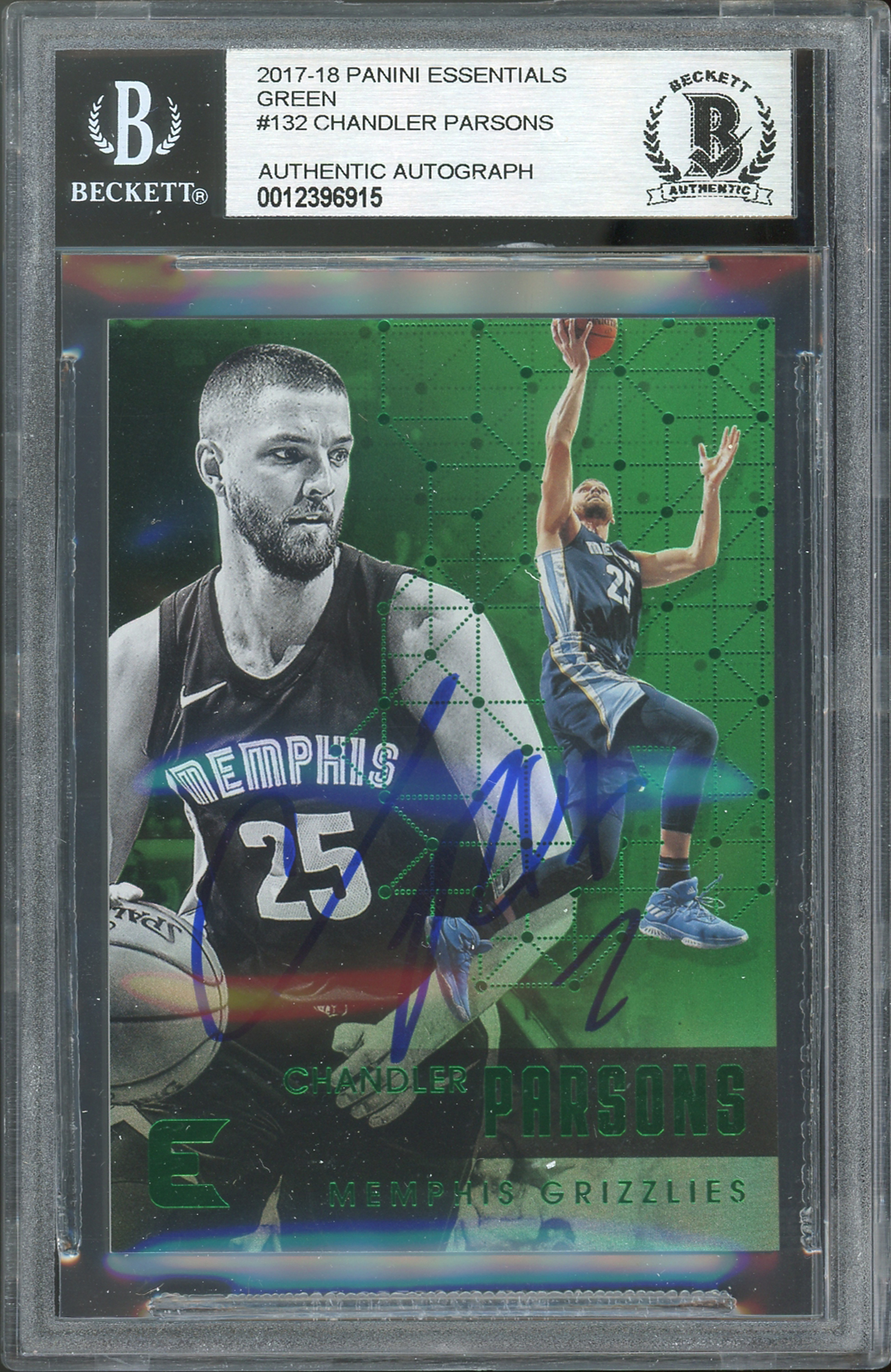 Grizzlies Chandler Parsons Signed 2017 Panini Essential Green #132 Card BAS Slab