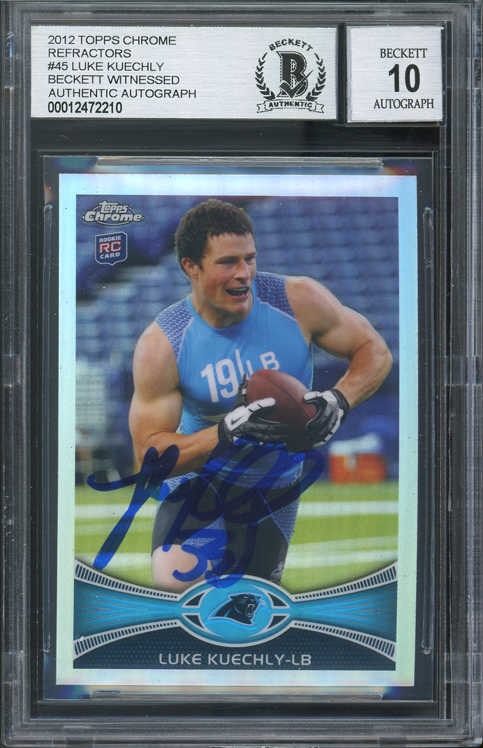 Luke Kuechly Signed 2012 Topps Chrome Refractors #45 RC Card Auto 10! BAS Slab