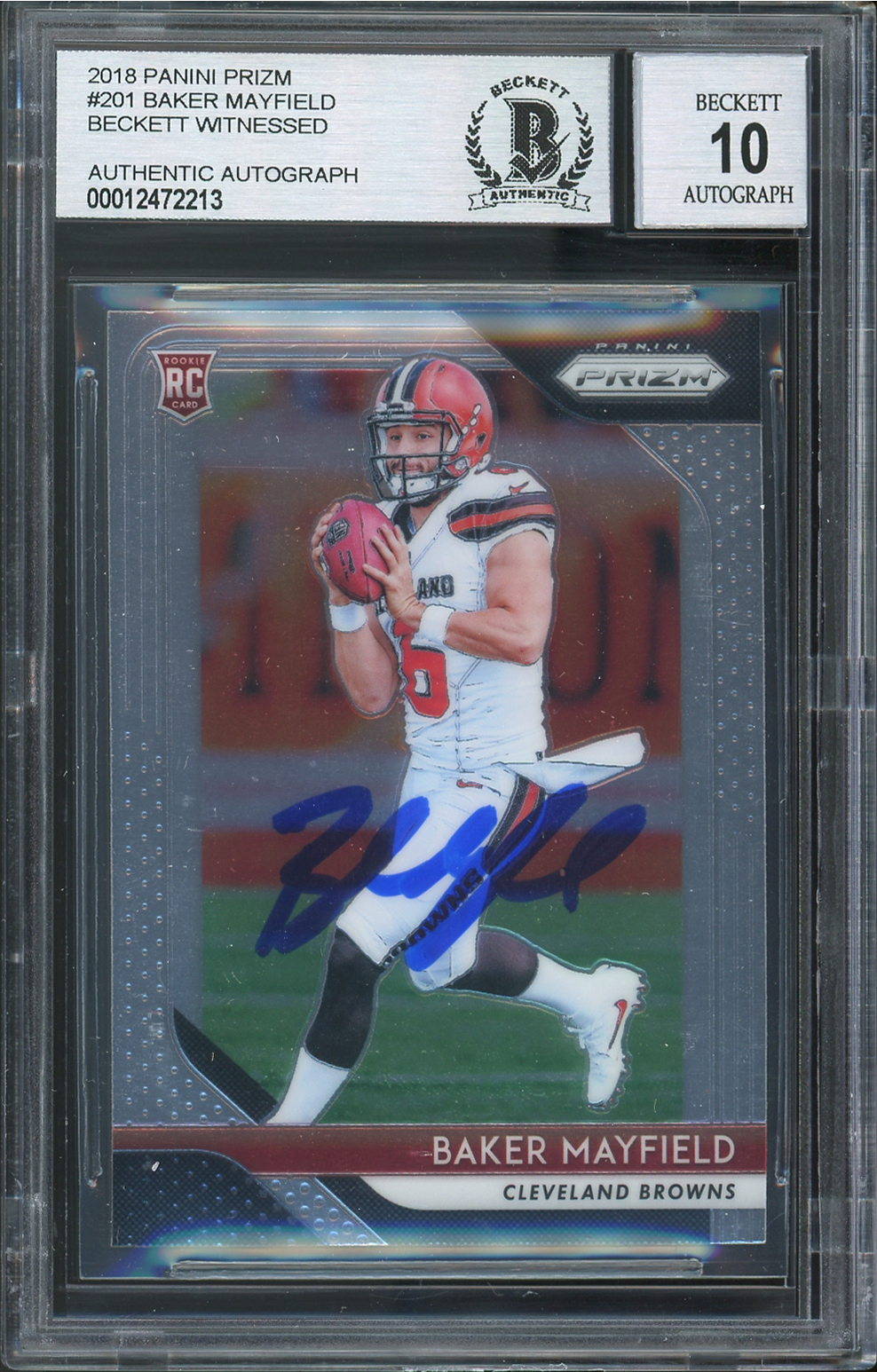 Browns Baker Mayfield Signed 2018 Panini Prizm #201 RC Card Auto 10! BAS Slabbed
