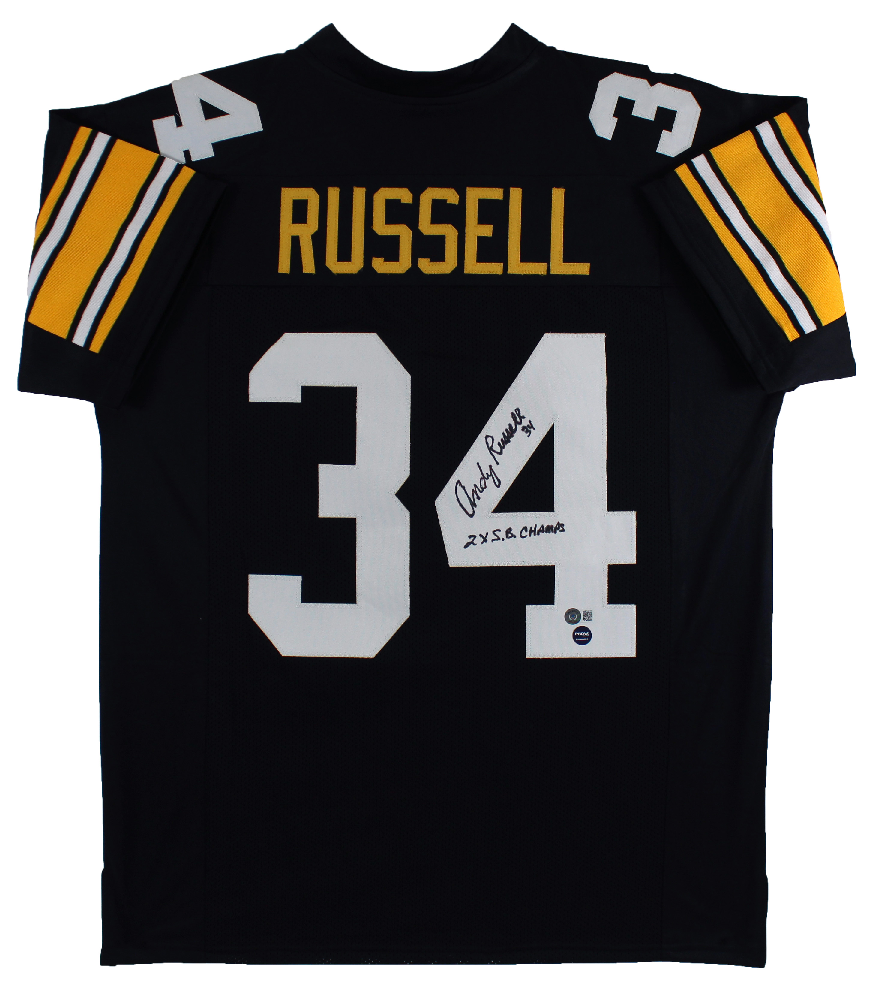Andy Russell "2x SB Champs" Signed Black Pro Style Jersey BAS Witnessed #WR55619