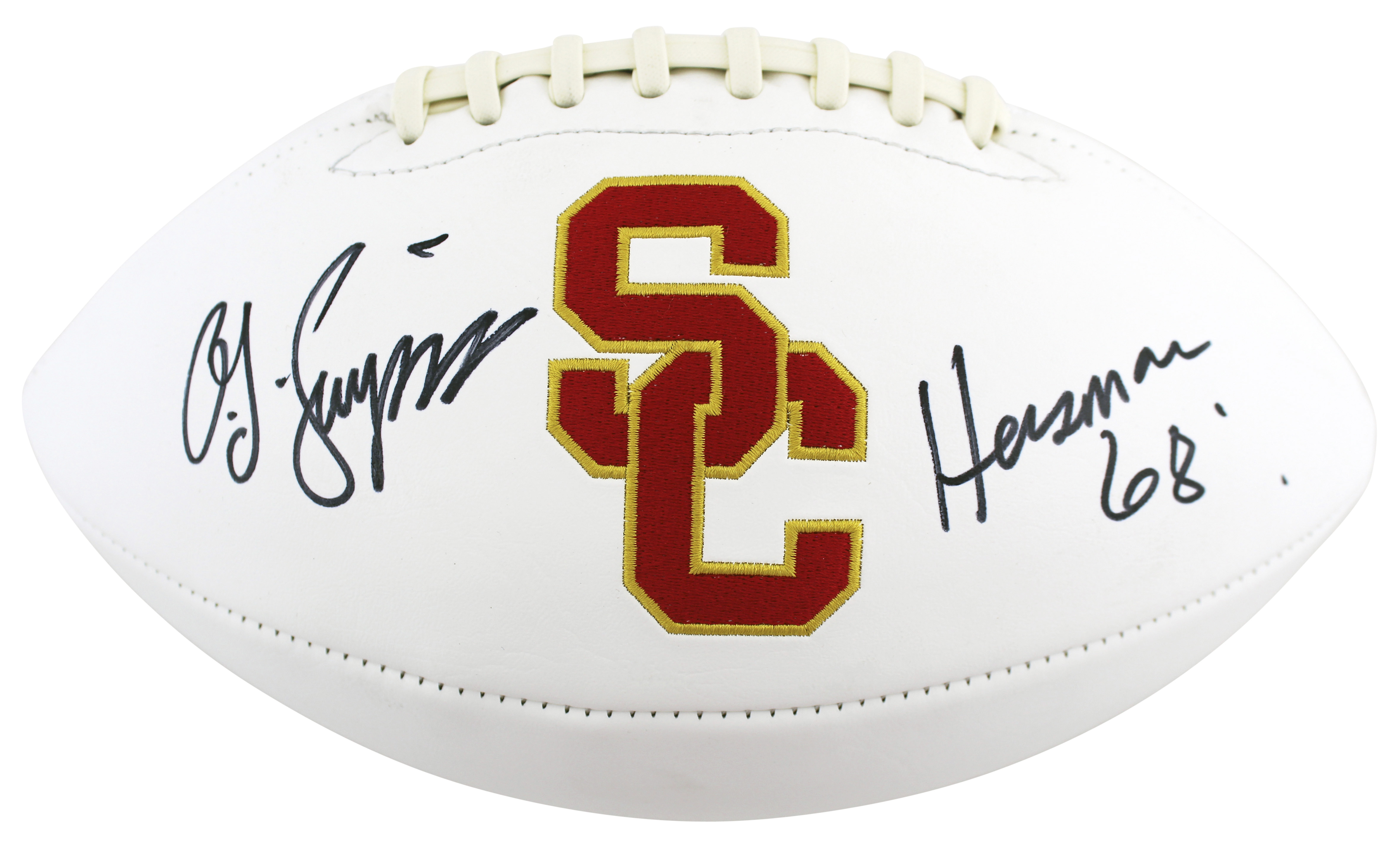 USC O.J. Simpson "Heisman 68" Signed White Panel Logo Football JSA Witness
