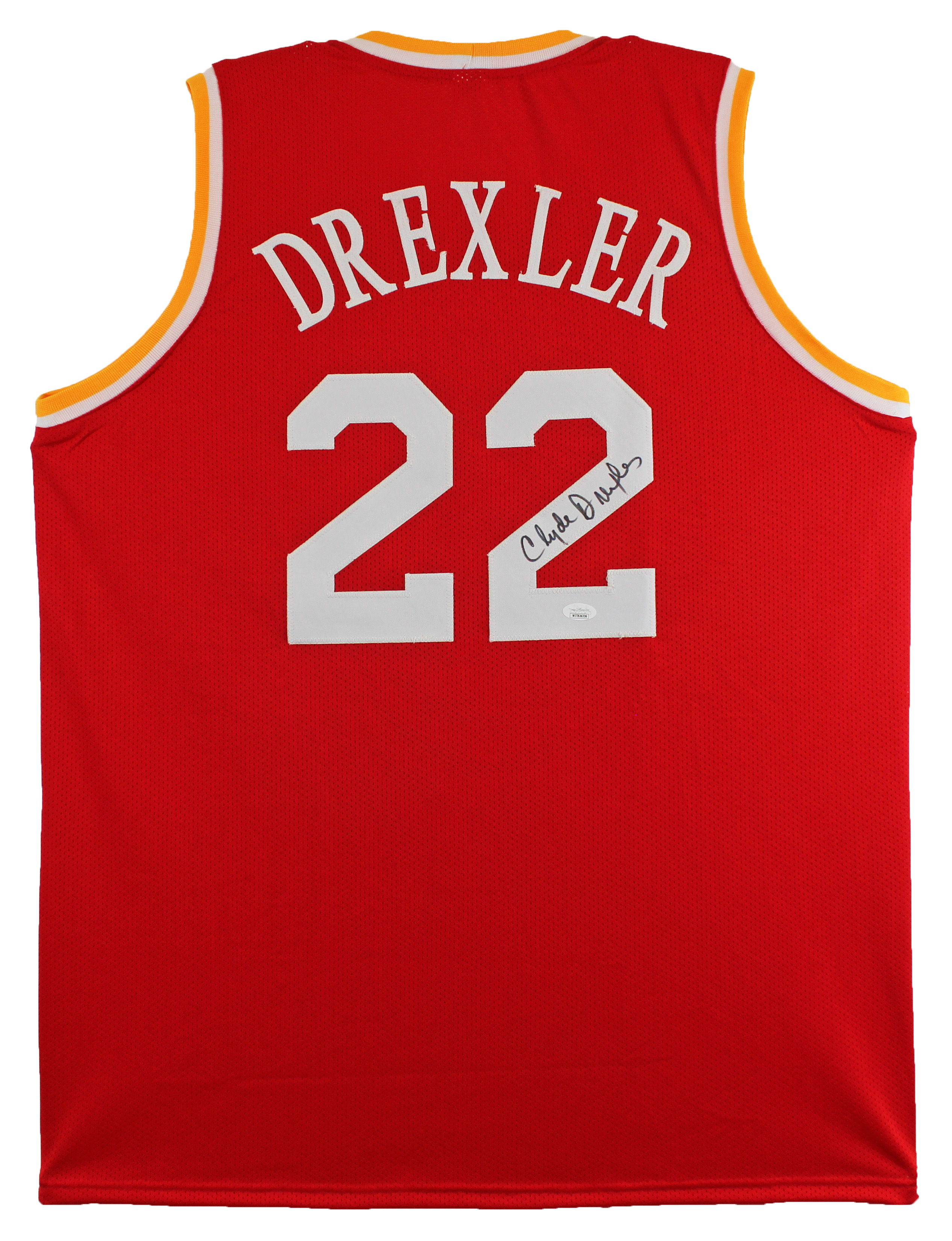 Clyde Drexler Authentic Signed Red Pro Style Jersey Autographed JSA Witnessed