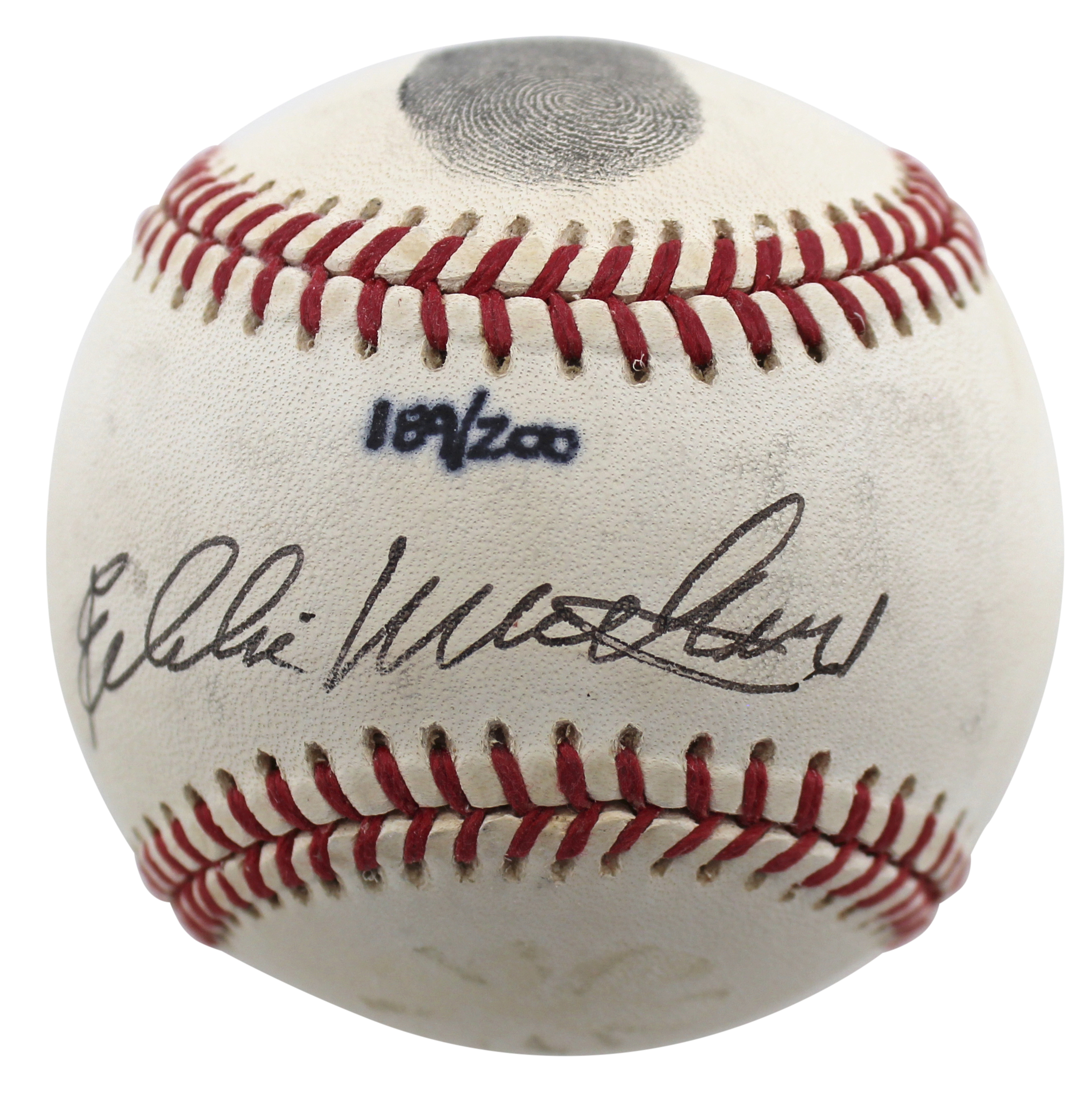 Braves Eddie Mathews Signed Thumbprint Onl Baseball LE #189/200 BAS #BD23275
