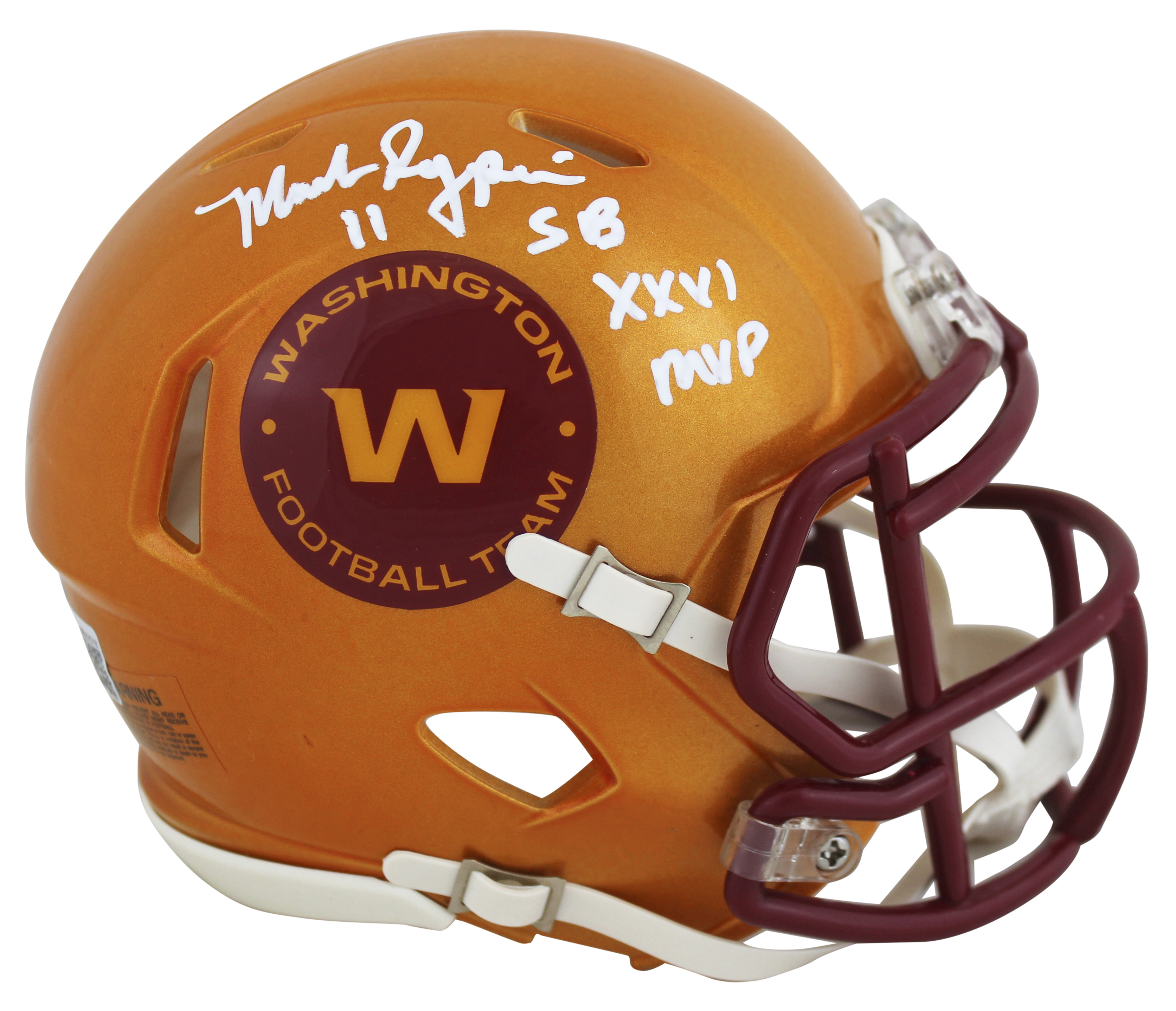 WFT Mark Rypien "SB XXVI MVP" Signed Flash Speed Mini Helmet BAS Wit #WR42578