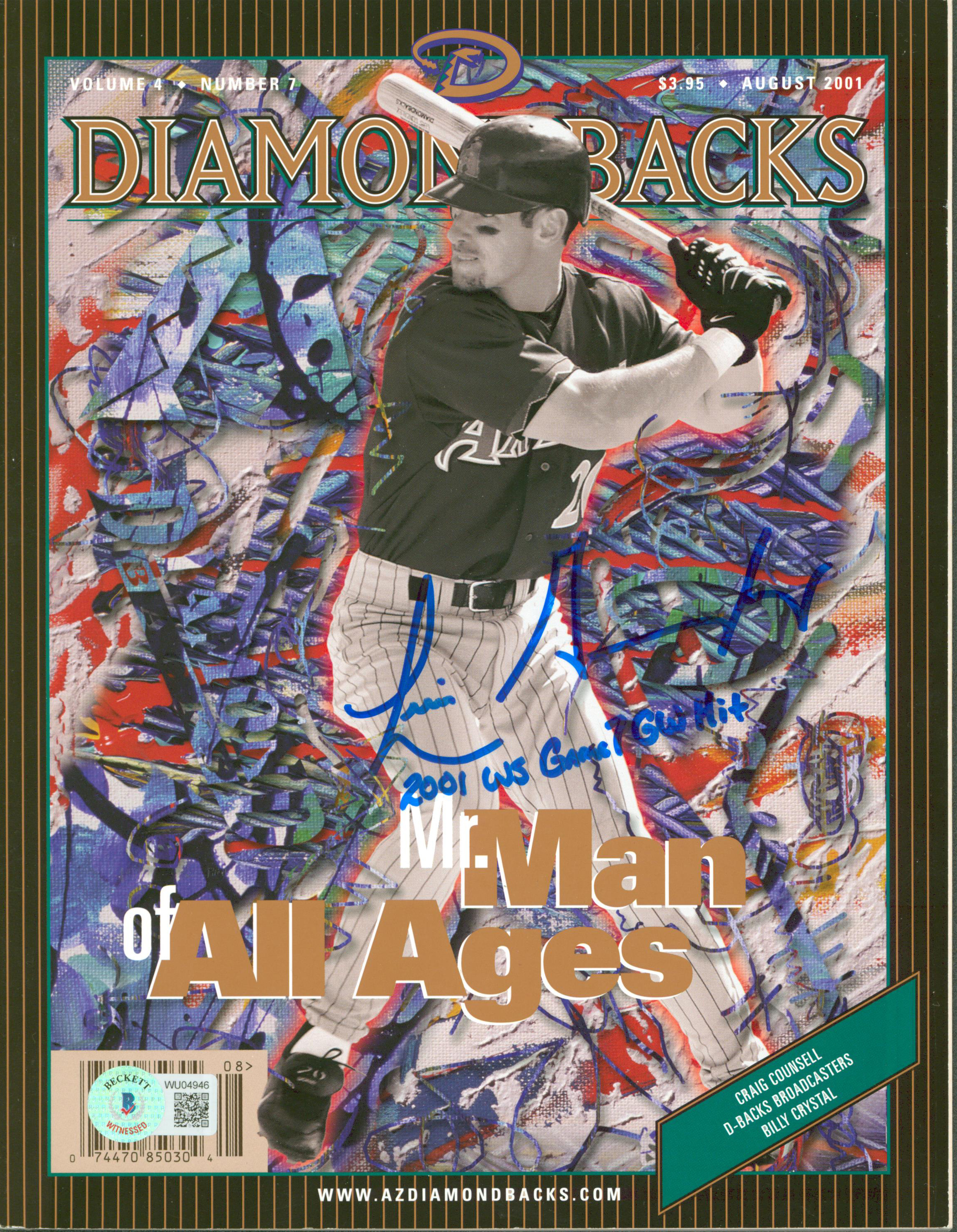Luis Gonzalez "2001 WS Game 7 GW Hit" Signed April 2001 D-Backs Magazine BAS Wit
