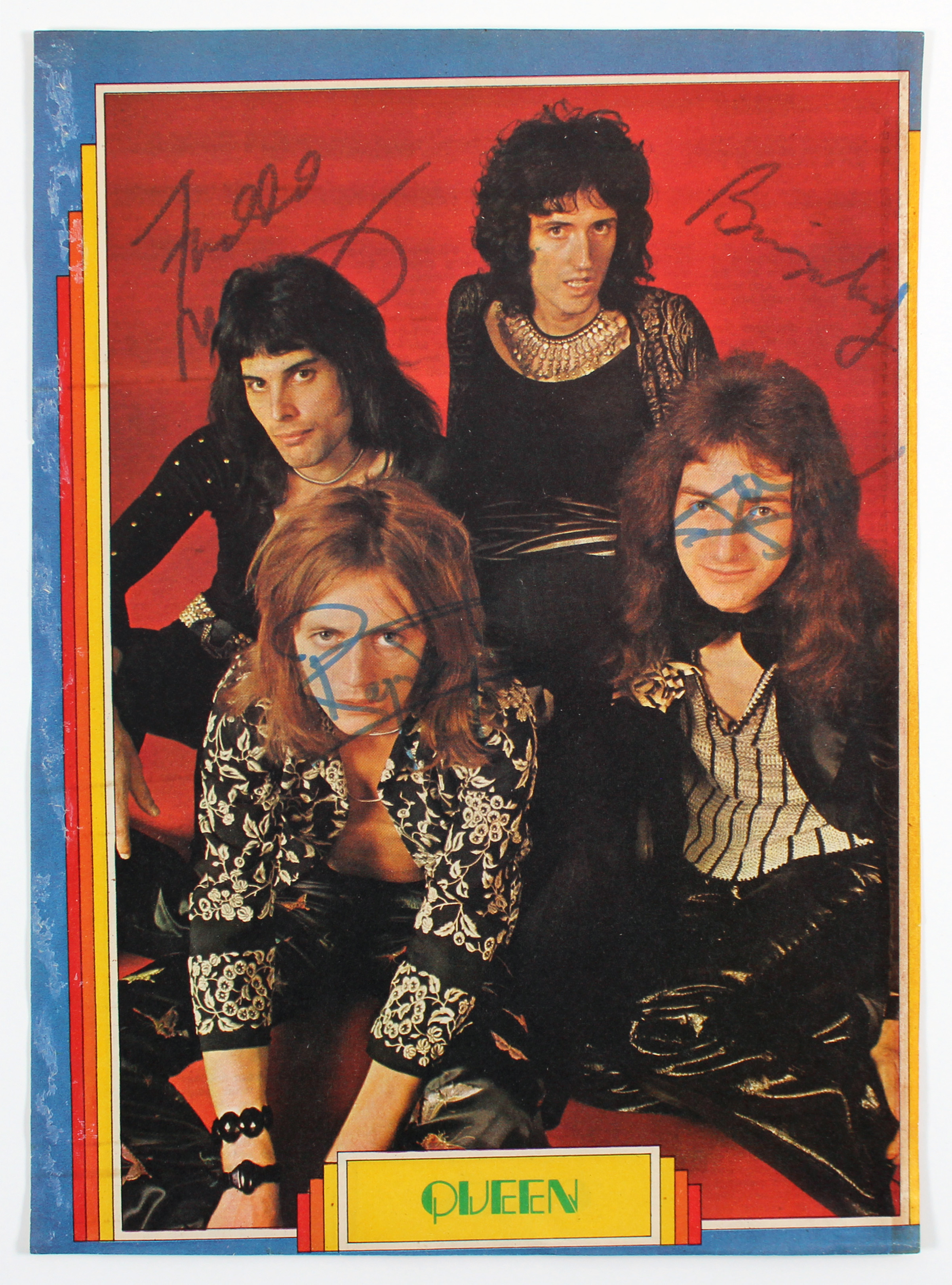 Queen (4) Mercury, May, Taylor & Deacon Signed 8.5x11.75 Magazine Page BAS