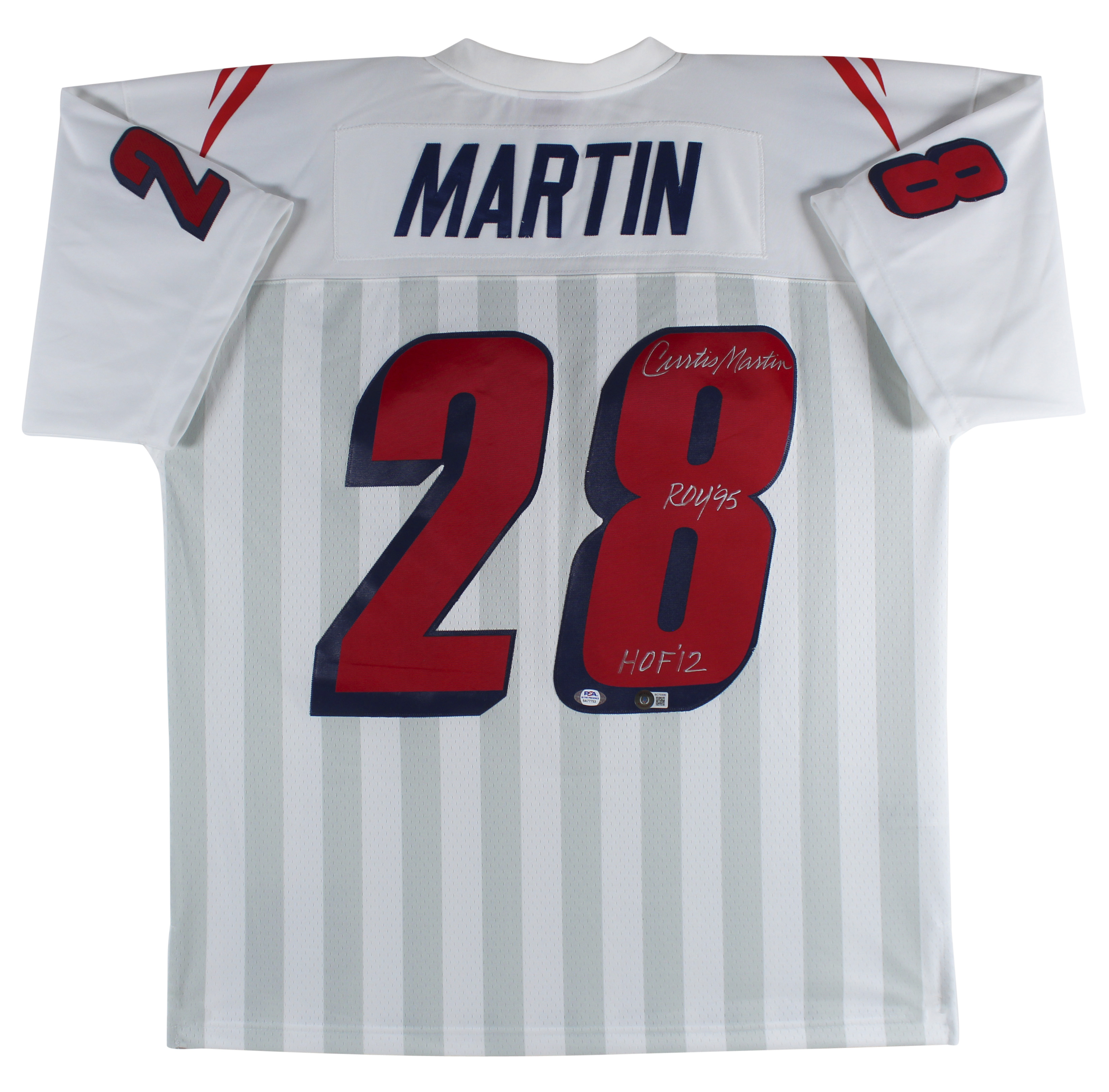 Patriots Curtis Martin "2x Insc" Authentic Signed White M&N Jersey BAS #BC70306