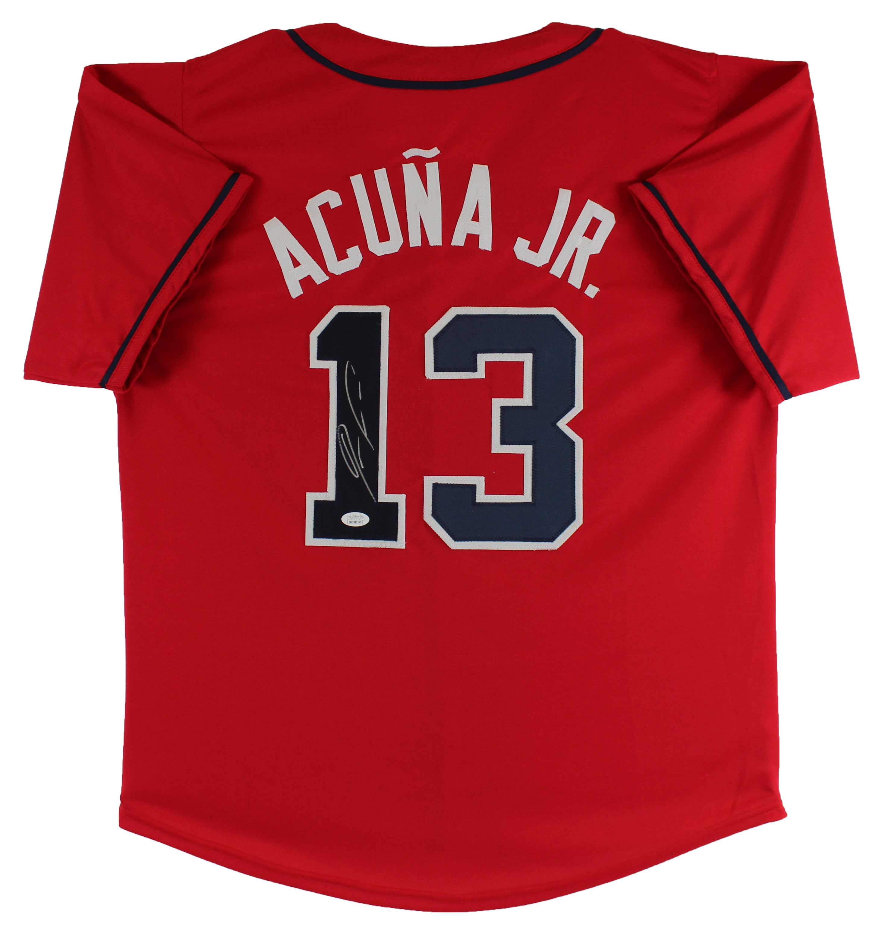 Ronald Acuna Jr. Authentic Signed Red Pro Style Jersey Autographed JSA Witness
