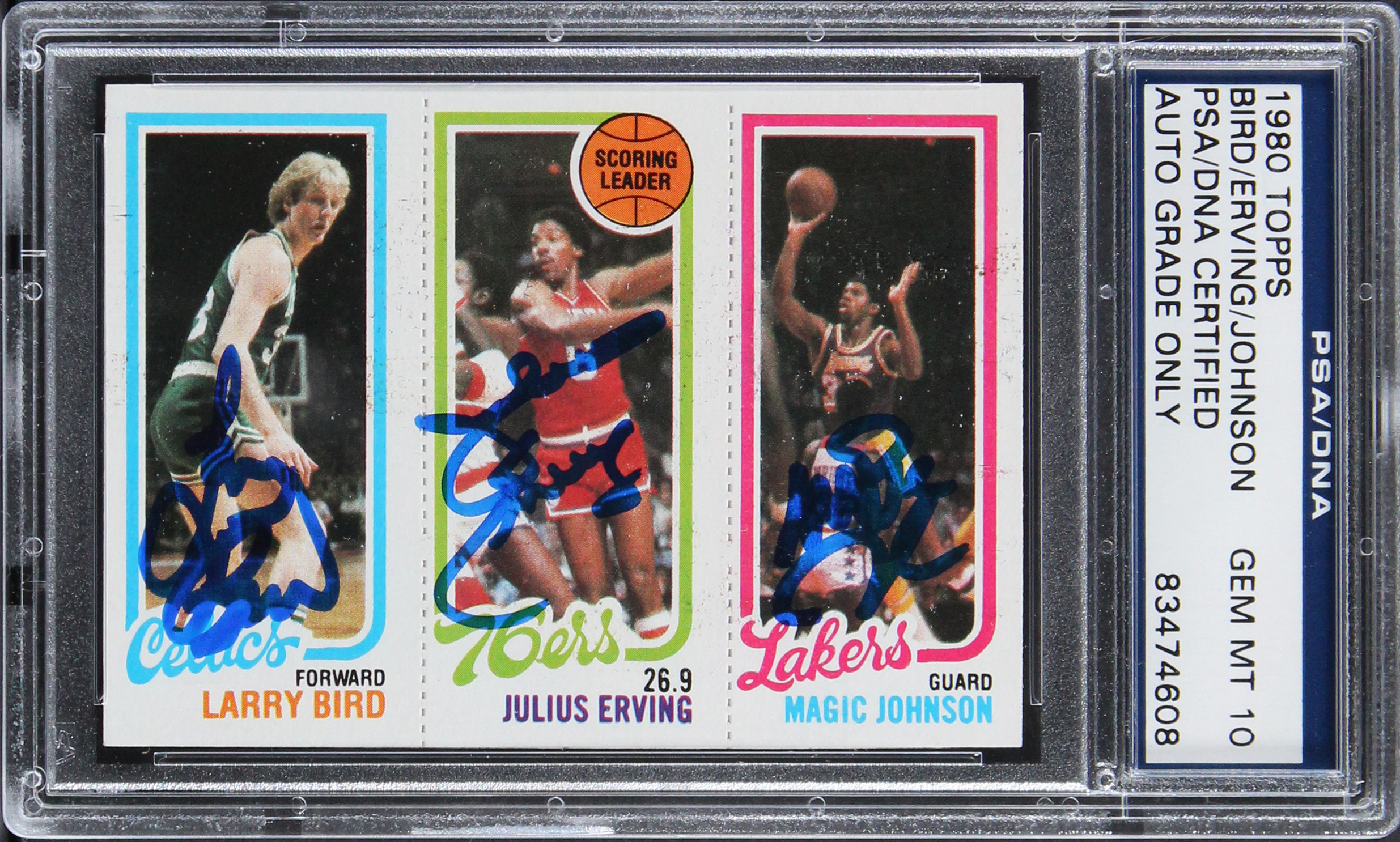 Bird, Erving & Magic Signed 1980 Topps Rookie Card Autos Graded 10! PSA Slabbed