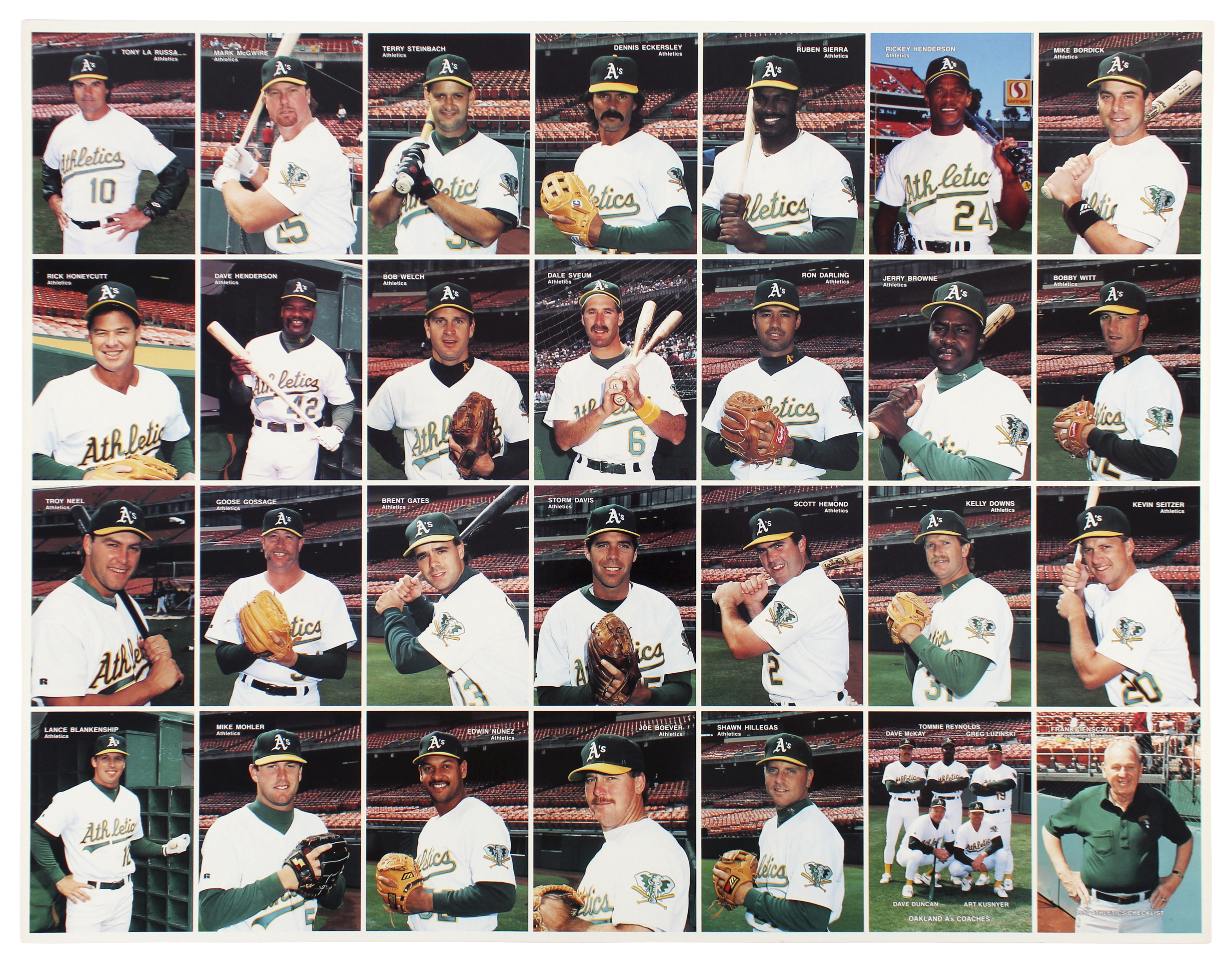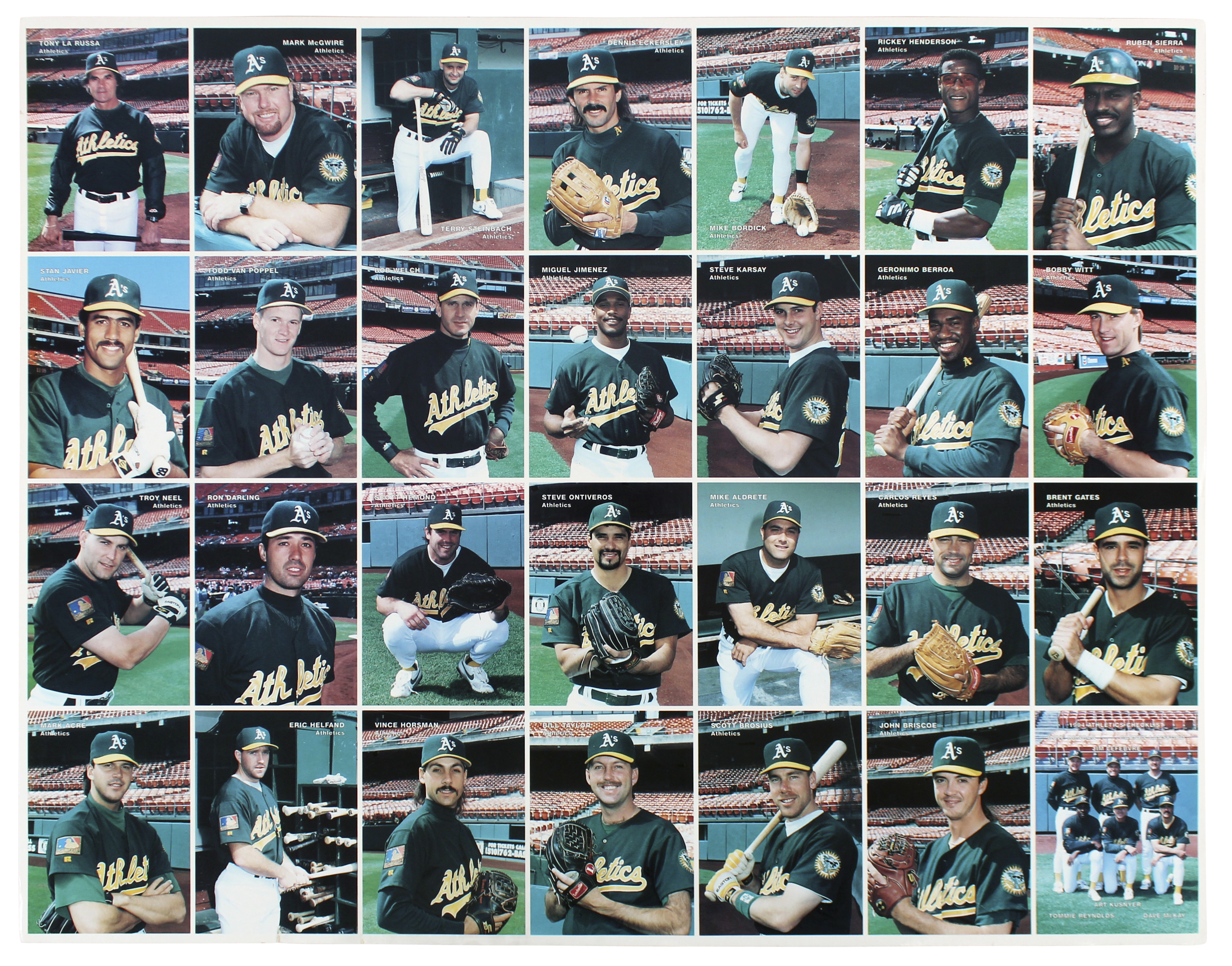 Athletics 15.25x19.5 Uncut 1994 Mother's Cookies Trading Card Sheet Un-signed 1