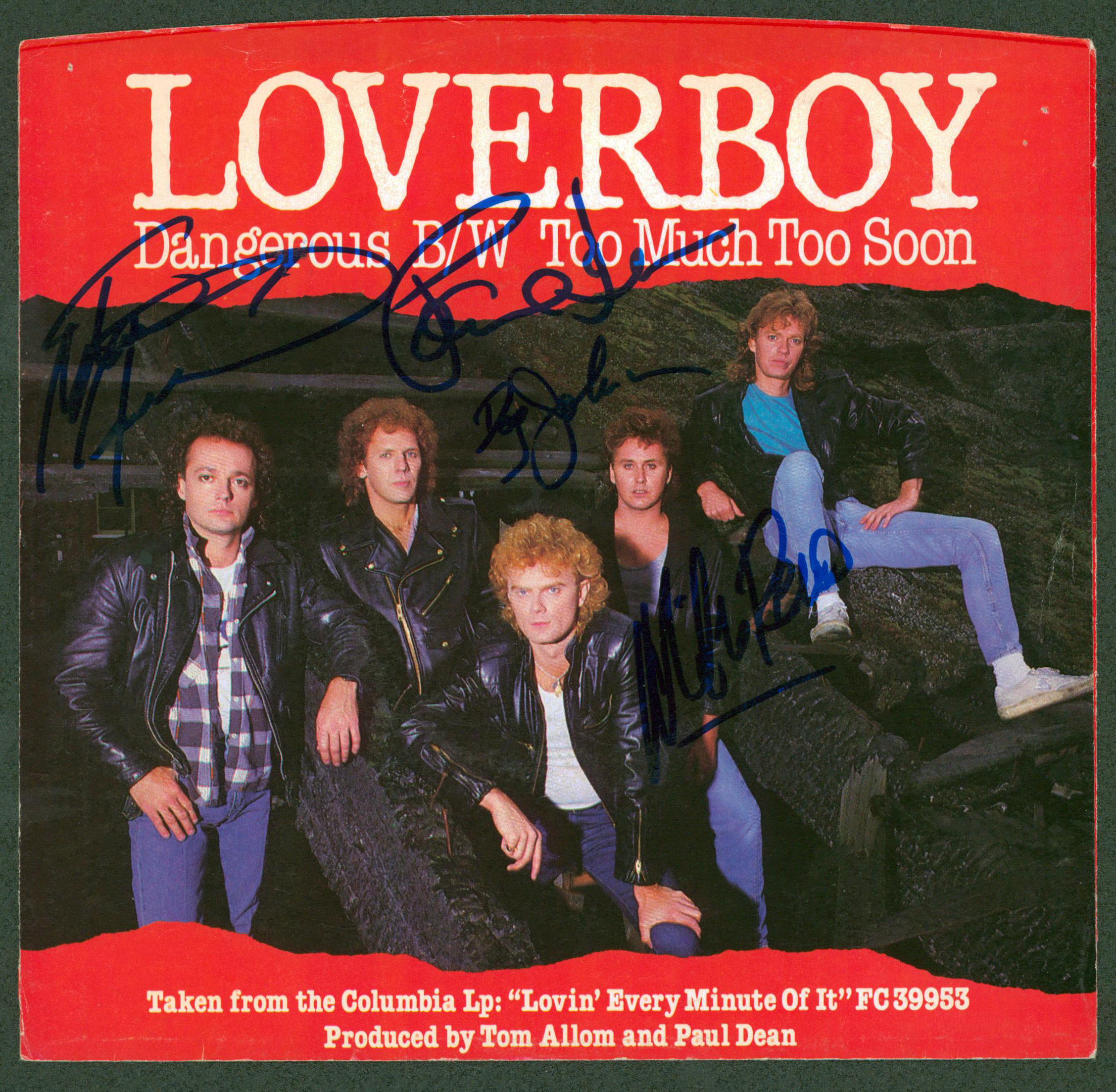 Loverboy (4) Reno, Dean, Johnson +1 Signed 45 RPM Album Cover BAS #AB77928