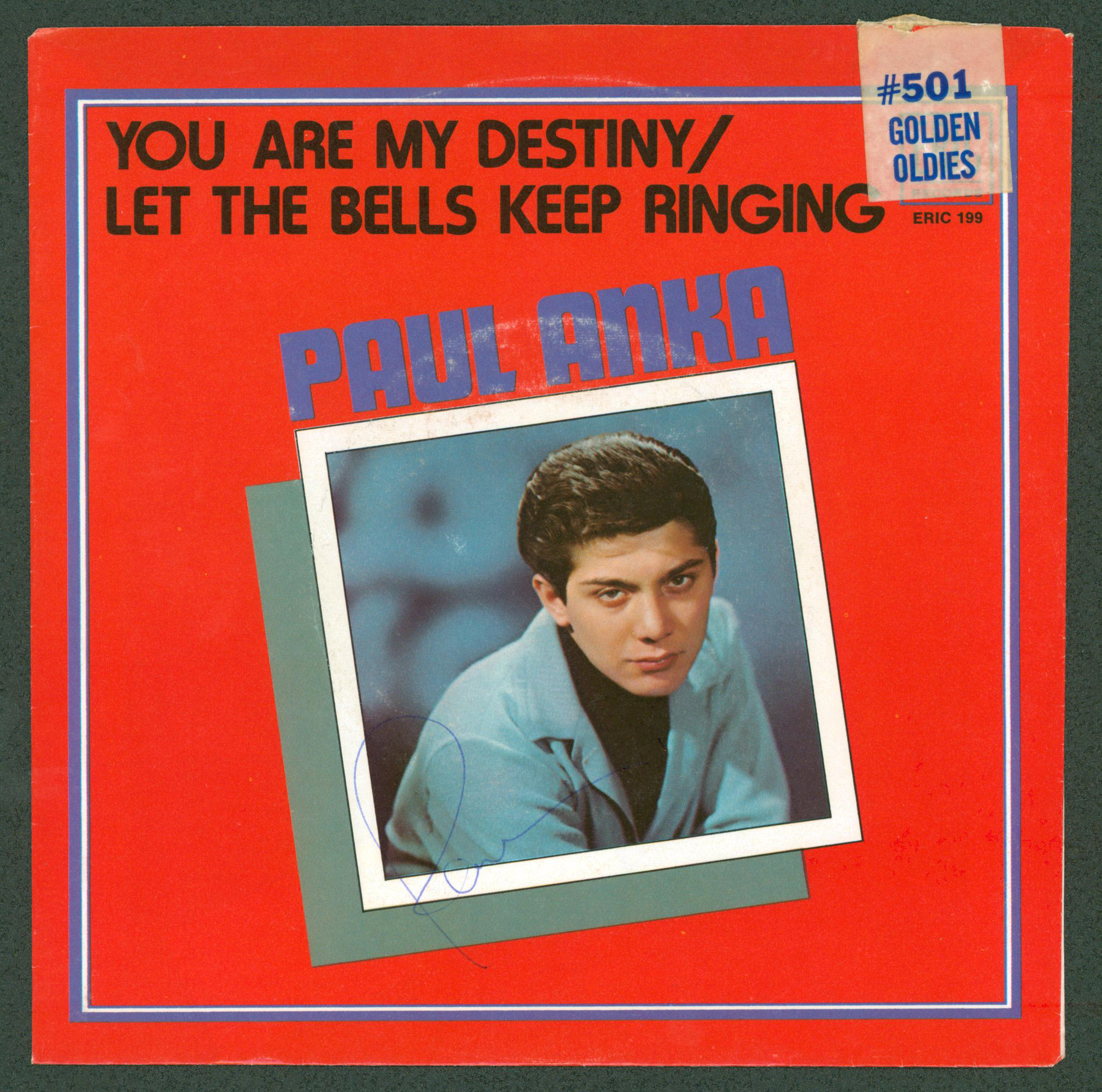 Paul Anka Authentic Signed You Are My Destiny 45 RPM Album Cover BAS #BG83021