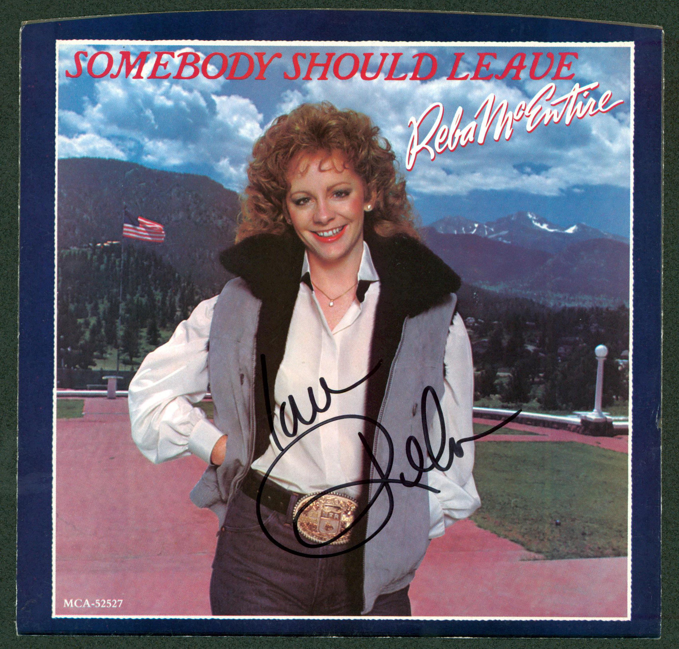 Reba McEntire Love Signed Somebody Should Leave 45 RPM Album Cover BAS #BG83015