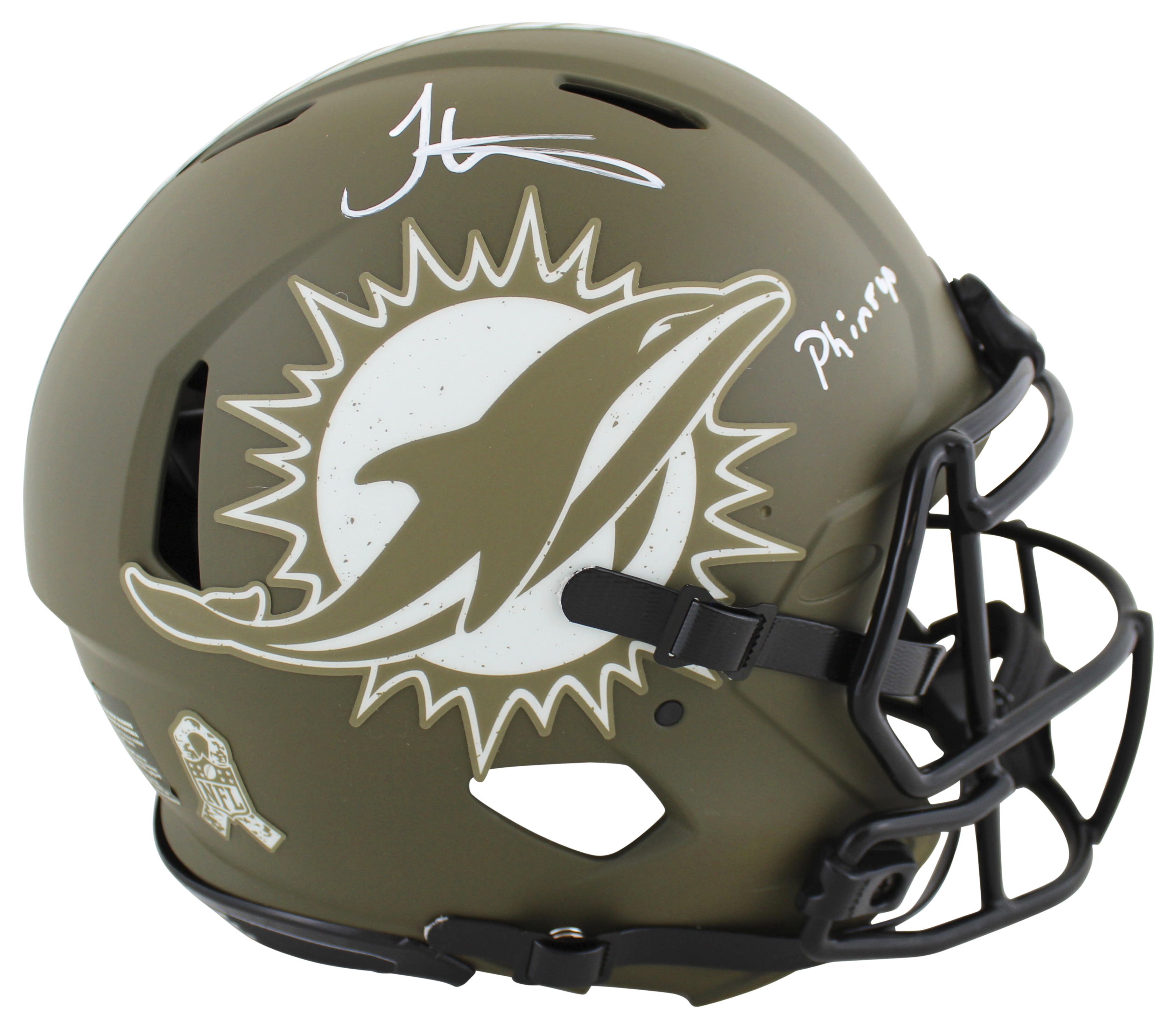 Tyreek Hill Phins Up! Signed Salute To Service F/S Speed Proline Helmet BAS Wit